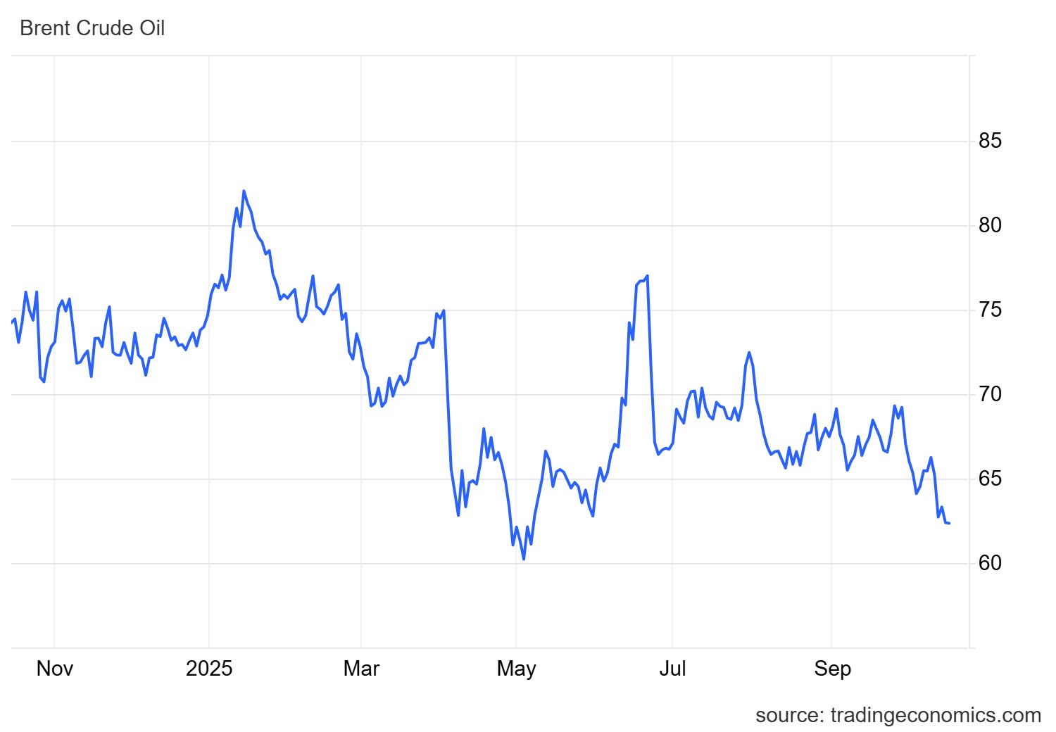 Τα συμβόλαια μελλοντικής εκπλήρωσης του Brent υποχώρησαν νωρίτερα κατά 21 σεντς, ή 0,3%, στα 62,18 δολάρια το βαρέλι , ενώ τα συμβόλαια μελλοντικής εκπλήρωσης του West Texas Intermediate των ΗΠΑ υποχώρησαν κατά 16 σεντς, ή 0,3%, στα 58,54 δολάρια το βαρέλι. Λίγο νωρίτερα το μπρεντ ενισχυόταν 0,02% στα 62,4 δολάρια το μπρεντ και το Crude Oil κέρδιζε 0,2% στα 58,826 δολάρια το βαρέλι.
