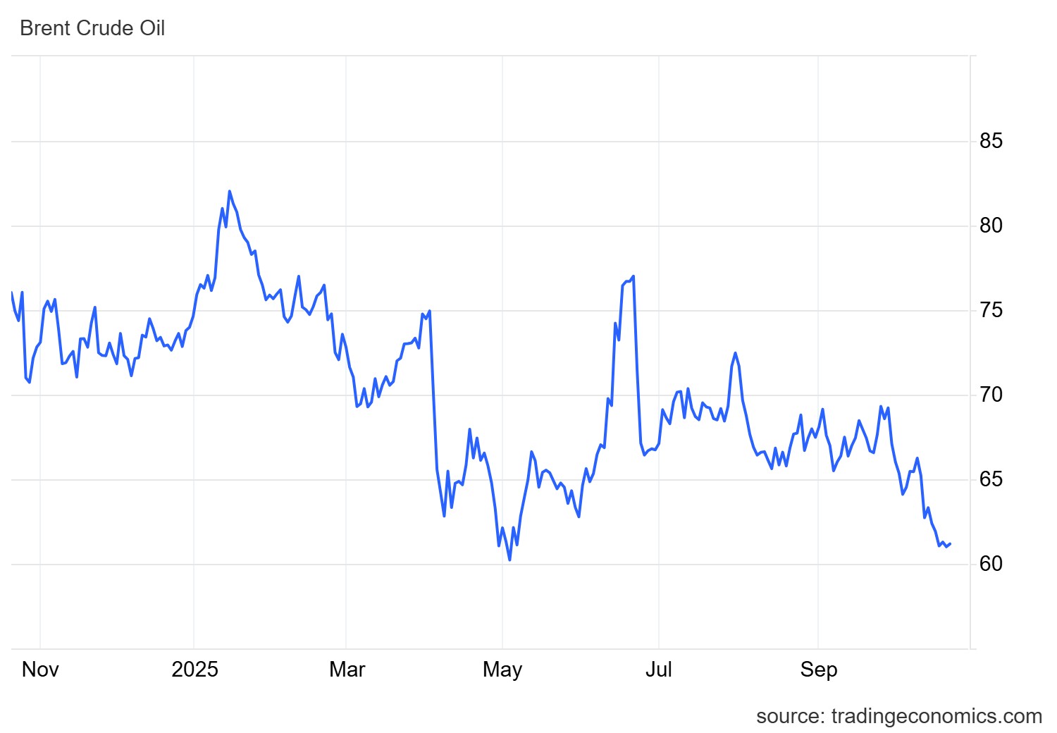 Οι τιμές έχουν σημειώσει σημαντική πτώση καθώς ο Οργανισμός Πετρελαιοεξαγωγικών Χωρών (ΟΠΕΚ) και οι σύμμαχοί του, συμπεριλαμβανομένης της Ρωσίας (ΟΠΕΚ+), προχωρούν με σχέδια για αύξηση της παραγωγής πετρελαίου. Αυτό οδήγησε τους αναλυτές να προβλέψουν πλεόνασμα αργού φέτος και το 2026, με τον Διεθνή Οργανισμό Ενέργειας (IEA) να προβλέπει την προηγούμενη εβδομάδα παγκόσμιο πλεόνασμα σχεδόν 4 εκατομμυρίων βαρελιών ημερησίως το 2026.