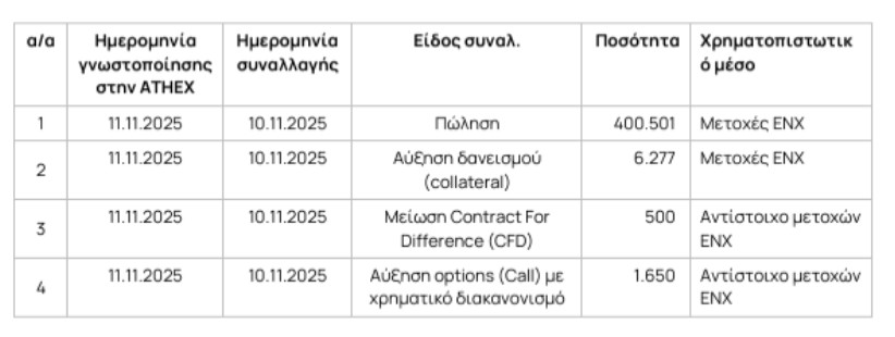 Μετά την ανωτέρω συναλλαγή, η SOCIETE GENERALE S.A.κατέχει το 0,48% των δικαιωμάτων ψήφου της Εταιρείας. Επίσης, η SOCIETE GENERALE S.A.με γραπτή γνωστοποίηση προς την Εταιρεία ενημέρωσε ότι προέβη στις ακόλουθες συναλλαγές μετοχών της Euronext NV (σύμβολο ENX, ISIN NL0006294274):