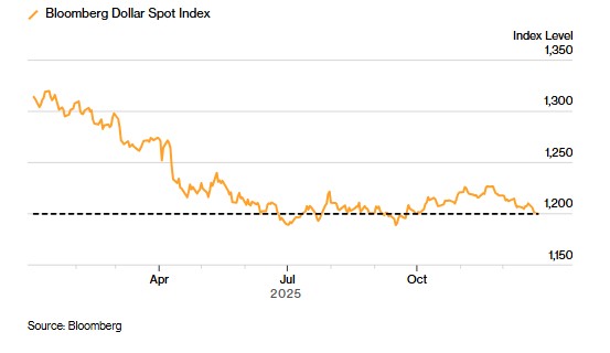 Η εκτίμηση του Bloomberg για το δολάριο είναι πως οδεύει προς τη χειρότερη εβδομάδα του από τον Ιούνιο, ενώ τα ομόλογα του αμερικανικού δημοσίου αυξήθηκαν καθώς οι επενδυτές περιμένουν στοιχεία που αναμένονται στις αρχές του επόμενου μήνα για να επιβεβαιώσουν τις προσδοκίες για περαιτέρω μειώσεις επιτοκίων από την Ομοσπονδιακή Τράπεζα των ΗΠΑ (Fed) το 2026.