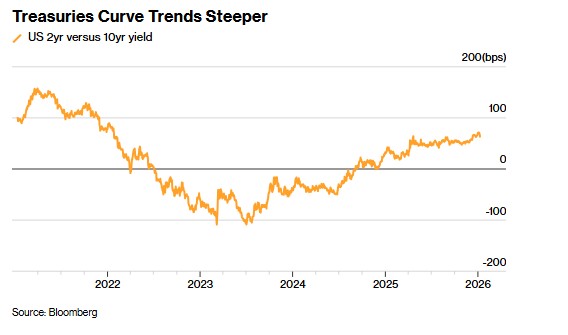 Η στρατηγική αυτή, γνωστή ως «steepener trade», ήταν μία από τις πιο δημοφιλείς το 2025, προσελκύοντας κολοσσούς όπως η Pimco. Η διαφορά μεταξύ των αποδόσεων των 2ετών και 10ετών ομολόγων έφτασε την περασμένη εβδομάδα στο υψηλότερο επίπεδο των τελευταίων εννέα μηνών.