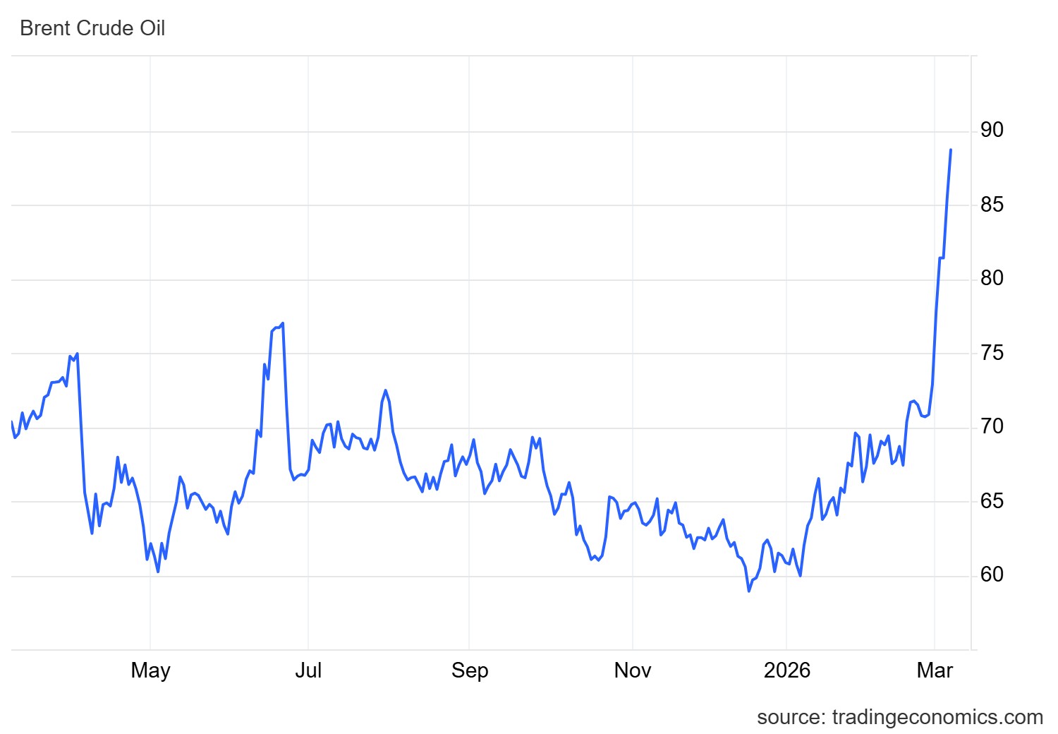 Τα συμβόλαια μελλοντικής εκπλήρωσης του αργού πετρελαίου Brent καταγράφουν άνοδο 4,11% στα 88,89 δολάρια το βαρέλι την Παρασκευή και ήταν σε πορεία για τη μεγαλύτερη εβδομαδιαία άνοδο από το 2022, ενώ το αργό πετρέλαιο ενισχύεται κατά 5,42% στα 85,39 δολάρια.