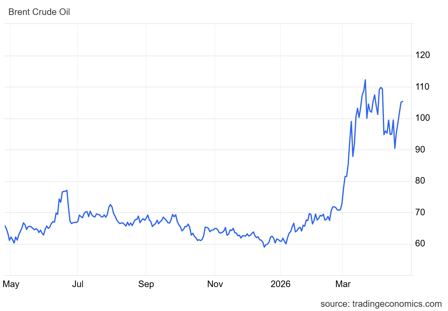 Το πετρέλαιο Brent σημείωσε άνοδο 17,13% κατά τη διάρκεια της εβδομάδας, ενώ το WTI αυξήθηκε κατά 15,13%, η δεύτερη μεγαλύτερη εβδομαδιαία άνοδος από την έναρξη του πολέμου.