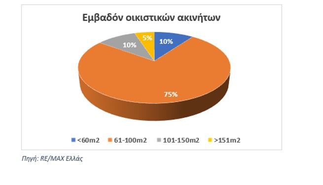 Αναφορικά με το εμβαδόν των οικιστικών ακινήτων που επέλεξαν οι ξένοι αγοραστές, η κατηγορία εκείνων που έχουν εμβαδόν από 61 τ.μ. έως 100 τ.μ. καταλαμβάνει το 75% των αγορών, καλύπτοντας τόσο επενδυτικές ανάγκες όσο και ιδιοκατοίκησης.