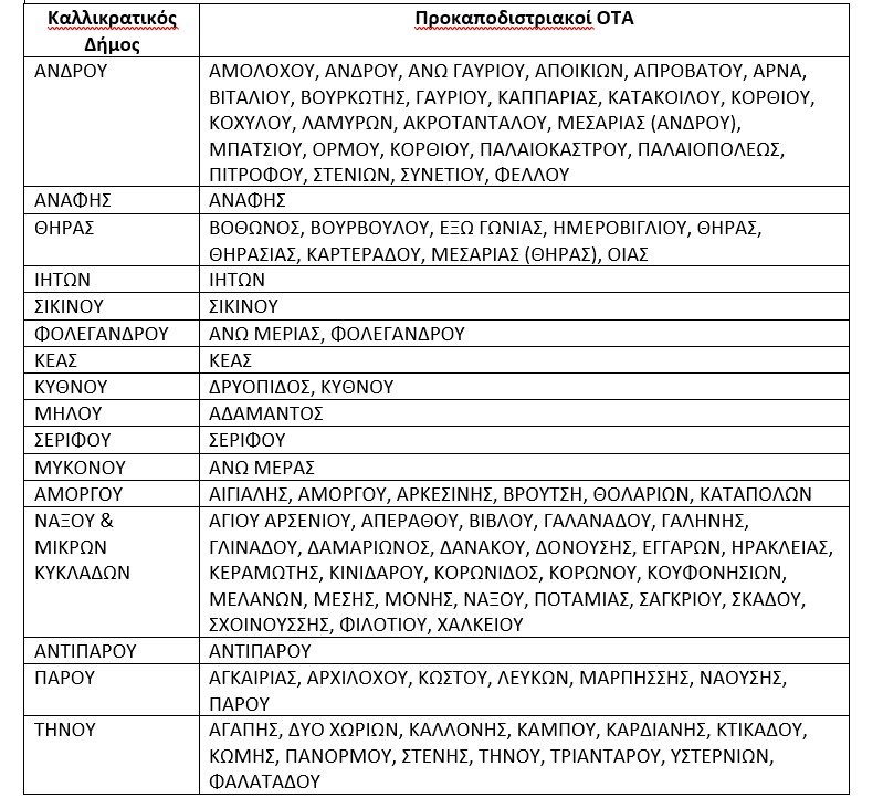 Το Ελληνικό Κτηματολόγιο ενημερώνει τους κατόχους ακίνητης περιουσίας σε περιοχές των Περιφερειακών Ενοτήτων Άνδρου, Θήρας, Κέας-Κύθνου, Μήλου, Μυκόνου, Νάξου, Πάρου, Τήνου της Περιφέρειας Νοτίου Αιγαίου ότι τη Δευτέρα 19 Ιανουαρίου 2026 ξεκινάει η Ανάρτηση των κτηματολογικών πινάκων και διαγραμμάτων.