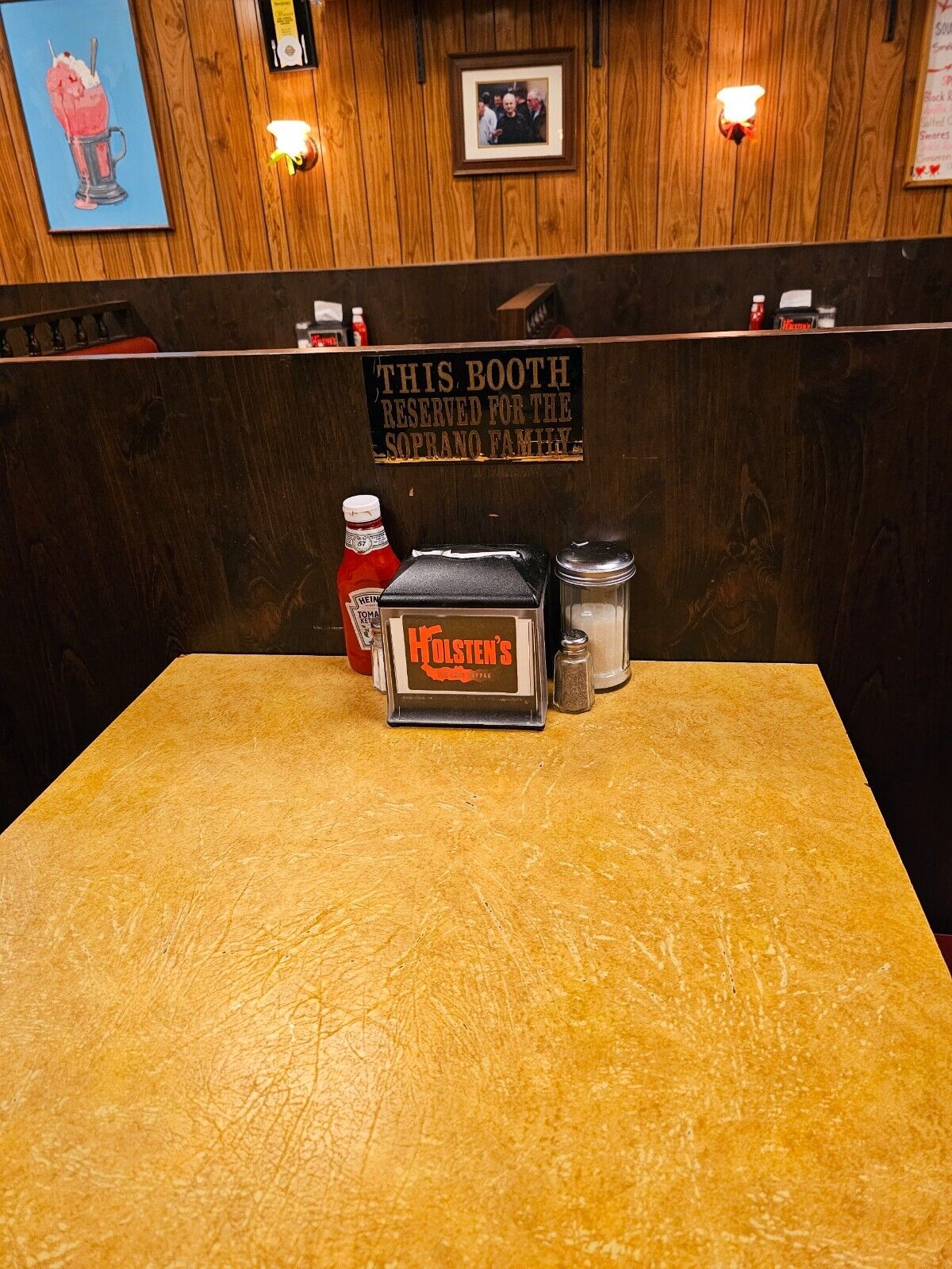 Το εστιατόριο Holsten’s στο Νιου Τζέρσεϊ διαθέτει προς πώληση το σεπαρέ στο οποίο εθεάθη για τελευταία φορά ο Τόνι Σοπράνο. Το εστιατόριο, το οποίο διαφημίζεται ως παγωτατζίδικο που σερβίρει επίσης φαγητό, έχει κερδίσει τη φήμη του στεκιού των Sopranos για περισσότερο από μια δεκαετία. Η ομάδα του Holsten’s ανακοίνωσε τις προθέσεις της να πωλήσει το σεπαρέ την περασμένη Τετάρτη, λέγοντας ότι αναγκάστηκε να το ξεφορτωθεί λόγω των αναγκαίων ανακαινίσεων.