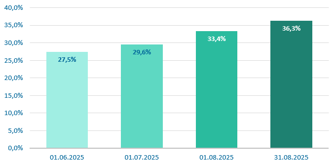 Από την εικόνα του χαρτοφυλακίου σε ισχύ των ανωτέρω επιχειρήσεων, το ποσοστό επί του συνόλου των συμβολαίων που διαθέτει την κάλυψη των φυσικών φαινομένων*, εξελίσσεται σύμφωνα με το επισυναπτόμενο γραφιστικό.