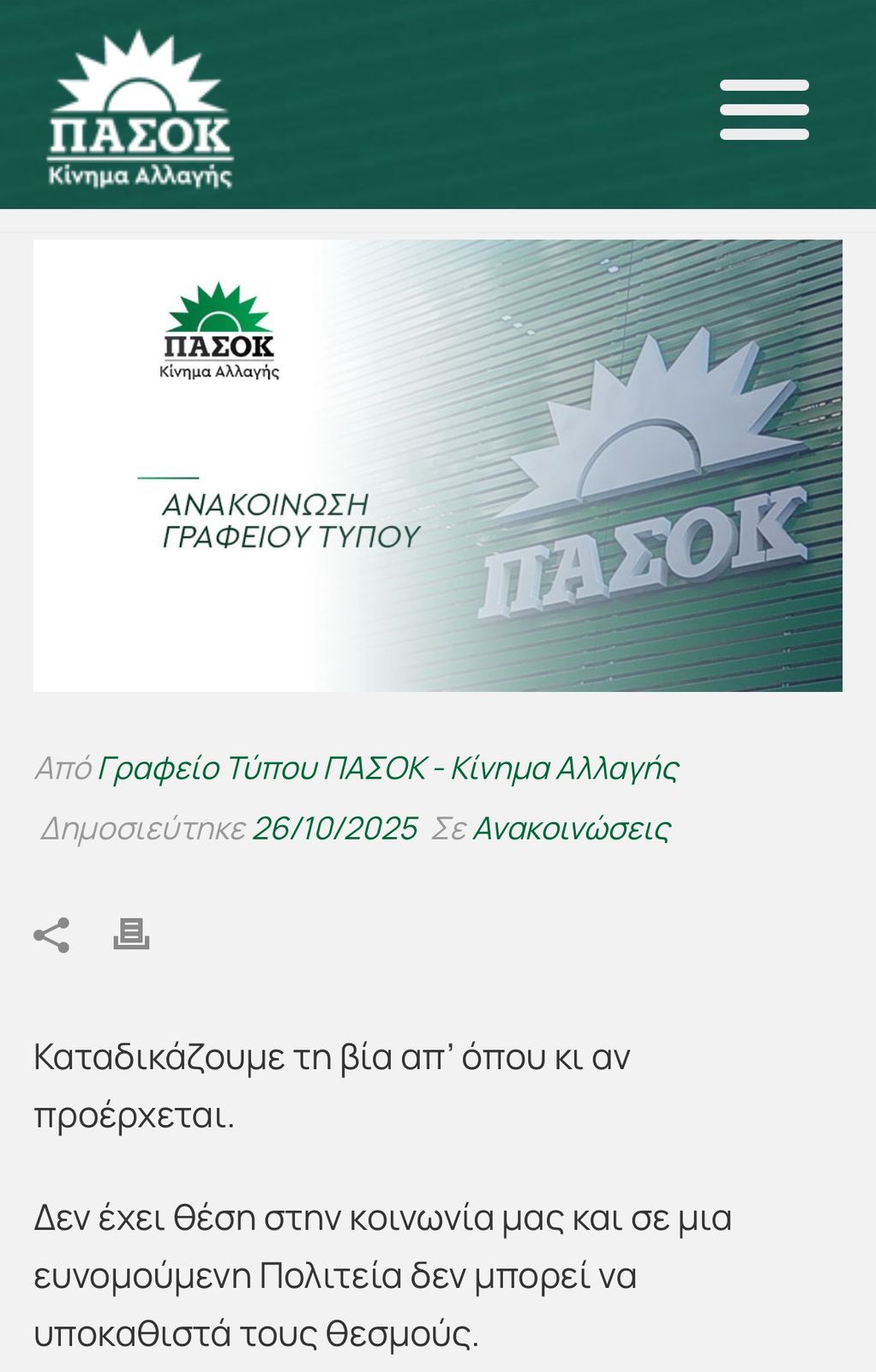 Χθες το απόγευμα στο site του ΠΑΣΟΚ ανέβηκε μια λακωνικότατη ανακοίνωση, που ανέφερε ότι «Καταδικάζουμε τη βία απ’ όπου κι αν προέρχεται. Δεν έχει θέση στην κοινωνία μας και σε μια ευνομούμενη Πολιτεία δεν μπορεί να υποκαθιστά τους θεσμούς». Από τα συμφραζόμενα της επικαιρότητας μπορούμε να εικάσουμε ότι πρόκειται για τη θέση της αξιωματικής αντιπολίτευσης σχετικά με την επίθεση που δέχτηκαν το Σάββατο το βράδυ στο Ηράκλειο από 50 κουκουλοφόρους ο Μάκης Βορίδης και η οικογένειά του. Κάποιος κακοπροαίρετος θα παρατηρούσε ότι, όταν πρόκειται για μια τόσο απερίφραστη καταδίκη, καλό θα ήταν μνημονεύεται και το περιστατικό που καταδικάζεται. Εκτός εάν Κυριακάτικα στη Χαριλάου Τρικούπη αποφάσισαν να μας ενημερώσουν για τις θέσεις τους γύρω από τη βία. Αλλά και κακοπροαίρετος να μην είναι κανείς, θα περίμενε μια λιγότερο «φλου» καταδίκη από ένα κόμμα του οποίου τα στελέχη και τα κεντρικά γραφεία έχουν αποτελέσει μόνιμους στόχους για διάφορα «καλόπαιδα».