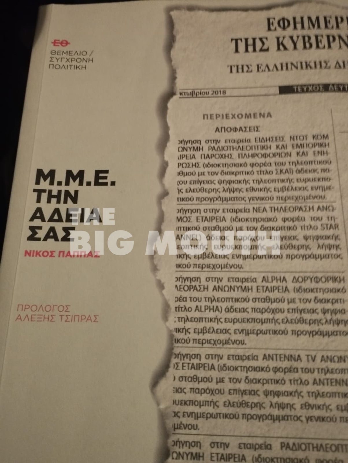 …και έγραφε τον πρόλογο του βιβλίου για τις τηλεοπτικές άδειες