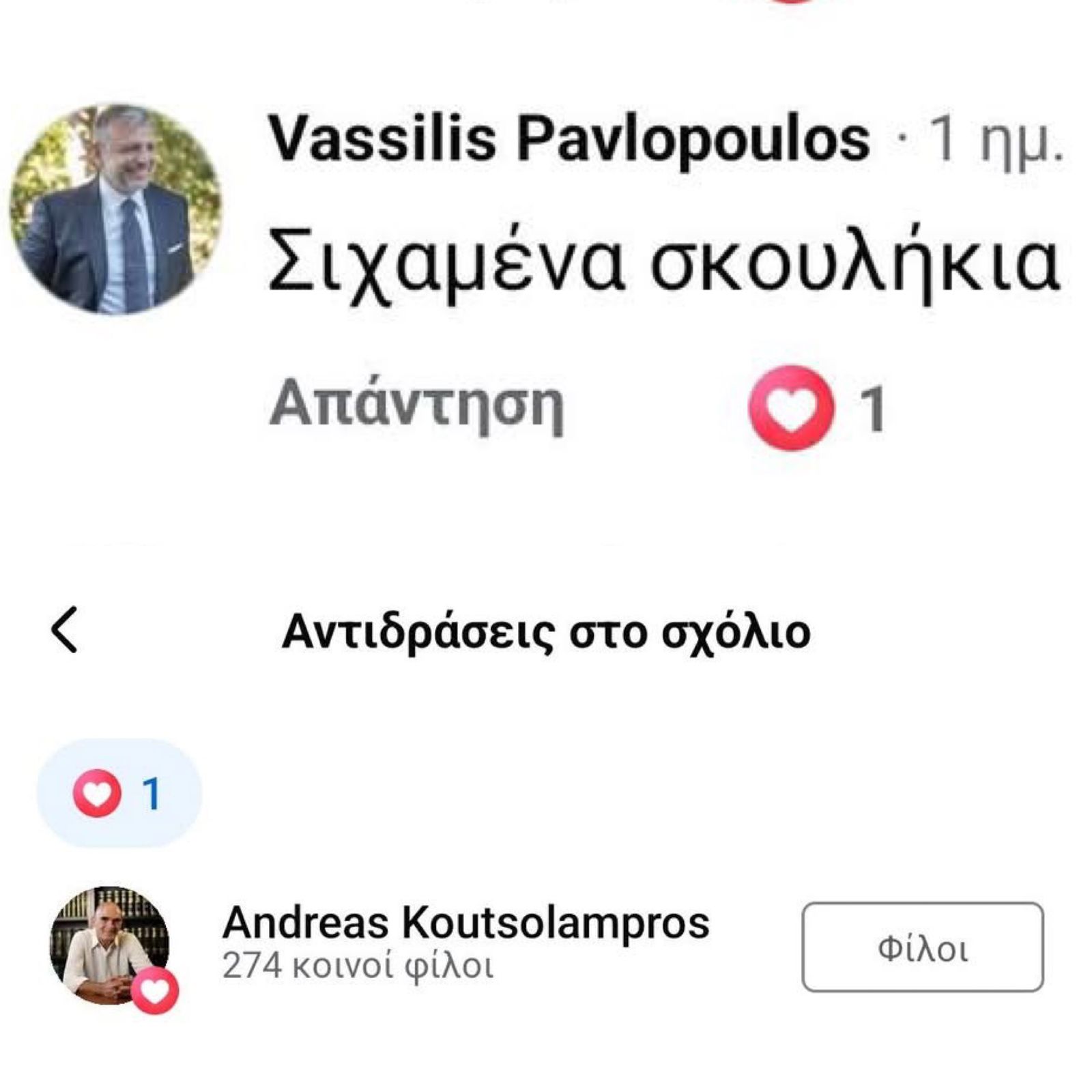 Για να μην είμαι, όμως, άδικος, κλείνω τα δικηγορικά, διευκρινίζοντας ότι κάποιοι φίλοι του απερχόμενου προέδρου Βερβεσού δεν μουγγάθηκαν μπροστά στην αποκάλυψη για την επαγγελματική σχέση Κουτσόλαμπρου – Κατρούγκαλου. Αναφέρομαι στον δικηγόρο Βασίλη Παυλόπουλο, ο οποίος χαρακτήρισε «σιχαμένα σκουλήκια» τους συναδέλφους του που βρίσκουν προβληματικό ο επίδοξος πρόεδρός τους να έχει υπάρξει μετακλητός στο υπουργείο που προκάλεσε τη μεγαλύτερη αποχή δικηγόρων των τελευταίων (πολλών) ετών. Αν το επώνυμο του εν λόγω δικηγόρου σας θυμίζει κάτι, πρόκειται για τον γιο του Προκόπη Παυλόπουλου – δηλαδή του τότε Προέδρου της Δημοκρατίας. Όλα αυτά θα ήταν παραπάνω από ασήμαντα, αν στο εν λόγω σχόλιο δεν είχε πατήσει καρδούλα ο άμεσα ενδιαφερόμενος – δηλαδή ο ίδιος ο Ανδρέας Κουτσόλαμπρος. Συνοψίζοντας, λοιπόν, ο σύντροφος Κουτσόλαμπρος επιδοκιμάζει τον χαρακτηρισμό «σιχαμένα σκουλήκια» προς ανθρώπους και επαγγελματίες των οποίων την ψήφο διεκδικεί, λες και είναι τίποτα κακοποιοί που τους συνέλαβε ο Στάθης Θεοχάρης στο «Καλημέρα Ζωή», του μακαρίτη του Φώσκολου. Εγώ δεν θα πω τίποτε άλλο, πέρα από ένα τελευταίο «καλή ψήφο» στους φίλους μου τους δικηγόρους.
