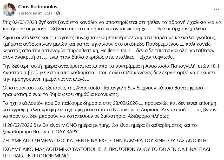Καθώς σε λίγες ημέρες θα έχουμε τις ετήσιες πορείες για την τραγωδία των Τεμπών, αυτό που παρατηρώ είναι ότι στήνεται ένα νέο επεισόδιο «ξυλολιάδας». Και δεν το γράφω έχοντας μαντικές ικανότητες, αλλά διαβάζοντας όσα διαδραματίζονται στο Μονομελές Πλημμελειοδικείο Λάρισας, στη δίκη σχετικά με τον χειρισμό του βιντεοληπτικού υλικού. Ακούσαμε την οσονούπω πρόεδρο Μαρία να κάνει λόγο για «δίκη-παρωδία», αλλά και την πρόεδρο Ζωή να επιτίθεται σε «δικαστές και εισαγγελείς, που έχουν βαλθεί να μπαζώσουν την υπόθεση και τα στοιχεία και να καταστρέψουν όποια στοιχεία συλλέγουν καθημερινά οι συγγενείς». Και αν αυτήν τη στιγμή στο επίκεντρο της έντασης βρίσκονται οι εκταφές, δεν είμαι καθόλου βέβαιος ότι ο Μάρτιος θα μας βρει στο ίδιο μήκος κύματος. Κι αυτό γιατί ήδη διάφοροι πραγματογνώμονες προαναγγέλλουν αποκαλύψεις εν όψει της επετείου. Αναφέρομαι συγκεκριμένα στον κύριο Χρήστο Ροδόπουλο, τον οποίο ουδόλως γνωρίζω, αλλά διαβάζω να προαναγγέλλει ότι «τα ηχητικά που θα παίξουμε δημόσια στις 28/02/2026… προφανώς και δεν είναι επίσημη καταγραφή, αλλά κρυφή καταγραφή μέσα από το Νοσοκομείο Λάρισας. Δεν πειράζει… ας βγουν να πουν ότι δεν μπορούν να κατατεθούν σε δικαστήριο. Αδιάφορο πλήρως». Και επειδή από τις περσινές ιστορίες για αγρίους στη μεν κυβέρνηση έπαθαν και (ελπίζω να) έμαθαν, και από τη δε «αντισυστημική» αντιπολίτευση δεν έχω καμία απολύτως προσδοκία, μένει να δούμε αν το ΠΑΣΟΚ θα ξαναγίνει ουρά της Κωνσταντοπούλου και των λοιπών μελών του «κινήματος των τυμβωρύχων». Όχι τίποτε άλλο, κοντεύει να κλείσει χρόνος και από την τελευταία πρόταση μομφής του κραταιού Νικόλα…