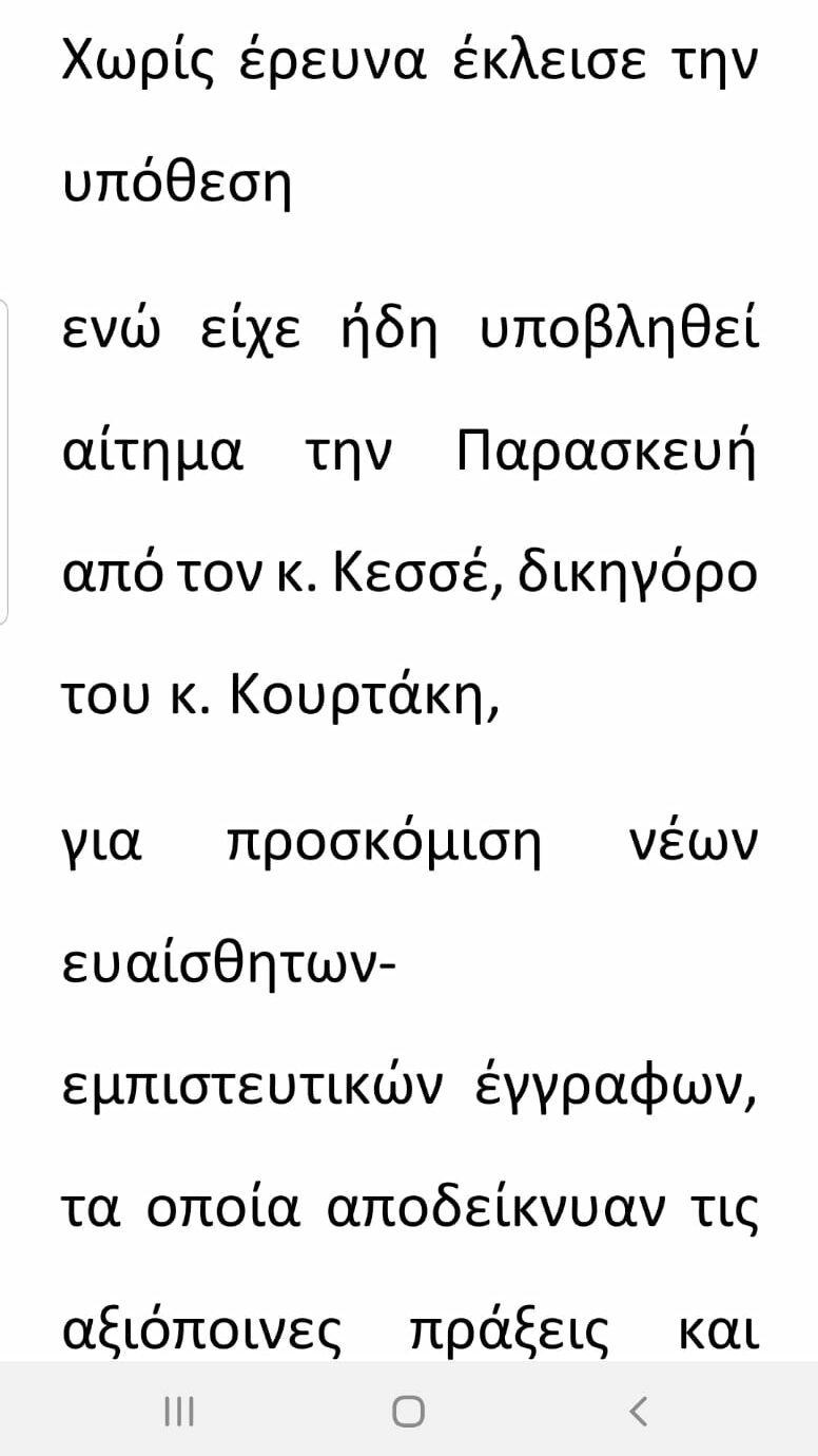 Καθώς διαπίστωσα ότι ο πρωινός μου αναγνώστης είχε όρεξη για κουβέντα, τον ρώτησα για την προαναγγελία στην οποία προέβη χθες ο Ζαχαρίας Κεσσές περί μελλοντικής μήνυσης για κατάχρηση εξουσίας εις βάρος των Αρεοπαγιτών που χειρίστηκαν την υπόθεση. «Αν θες τη γνώμη μου, προσπαθεί να κινητοποιήσει τη Δικαιοσύνη για να τον καλέσει να τεκμηριώσει τους ισχυρισμούς του», μου είπε. «Ωστόσο», συνέχισε, «οι δικαστές έχουν πάψει να τσιμπάνε σε τέτοια κόλπα». Αυτό, όμως, που μου έκανε εντύπωση ήταν η εξήγηση που μου έδωσε αμέσως μετά: «Αν εμένα ένας πελάτης μου είχε υποστεί τέτοιο «στήσιμο» σαν αυτό που φωνάζουν ότι έπαθαν στο ΠΑΣΟΚ, το πρώτο πράγμα που θα έκανα θα ήταν να υποβάλω τις μηνύσεις την ίδια ώρα. Μέσα για να διοχετεύσει τους ισχυρισμούς του έχει, οπότε η ζημιά που θα πετύχαινε εις βάρος εκείνων που κατηγορεί θα ήταν πολλαπλάσια». Προτού με αποχαιρετήσει, μου είπε και κάτι τελευταίο: «Σκέψου να σπάσει ο διάολος το ποδάρι του, να γίνει πρωθυπουργός ο Ανδρουλάκης και να κάνει τη μήνυση ο Κεσσές. Δεν θα διαμορφωθεί ένα καθεστώς επηρεασμού της κρίσης του εισαγγελέα που θα αναλάβει τον φάκελο;», ήταν το ερώτημά του, στο οποίο εγώ δεν είχα απάντηση, οπότε το αφήνω στην κρίση σας.
