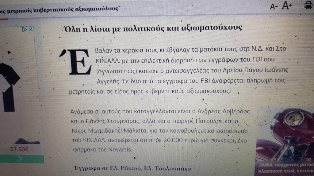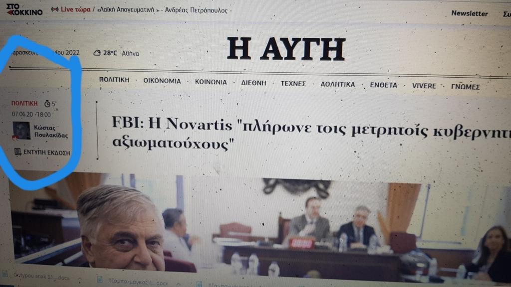 -Κάτι μου λέει πως ο κουρνιαχτός που σηκώνει ο ΣΥΡΙΖΑ για ένα έγγραφο του FBI που τάχα μου παραποιήθηκε, ενώ το είχε δημοσιεύσει μέχρι και η Αυγή στο παρελθόν, αναφορικά με την υπόθεση Novartis δεν είναι τίποτα άλλο από μια κίνηση προληπτικού αντιπερισπασμού εν όψει ραγδαίων εξελίξεων που θα προκύψουν τις επόμενες ημέρες τόσο για το πως «στήθηκε» η συγκεκριμένη σκευωρία, όσο και για μια άλλη σημαντική υπόθεση.