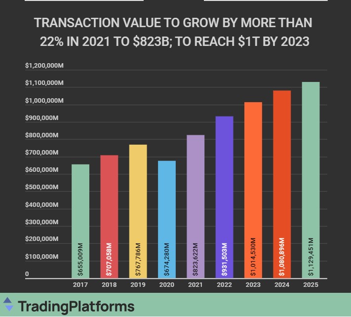 Ο πήχης για τις συναλλαγές ηλεκτρονικού εμπορίου στην Ευρώπη μπαίνει ακόμη πιο υψηλά για τα επόμενα χρόνια. Μάλιστα, εκτιμάται ότι εντός της επόμενης διετίας και συγκεκριμένα το 2023, η συνολική αξία των συναλλαγών e-commerce στην Ευρώπη θα υπερβεί το ορόσημο του 1 τρισ.δολ.