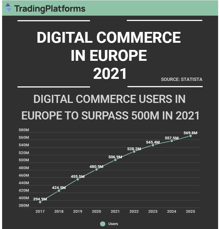 Μέχρι τα τέλη του 2021, υπολογίζεται ότι οι online αγοραστές στη Γηραιά Ήπειρο θα ξεπεράσουν τα 500 εκατομμύρια από περίπου 480 εκατ. έναν χρόνο νωρίτερα.
