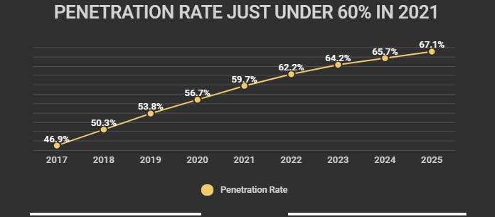 Το ποσοστό αυτό μεταφράζεται σε διείσδυση 60% του e-commerce, που σημαίνει ότι μέχρι τα τέλη του 2021 οι έξι στους δέκα Ευρωπαίους θα κάνουν ηλεκτρονικά τις αγορές τους.
