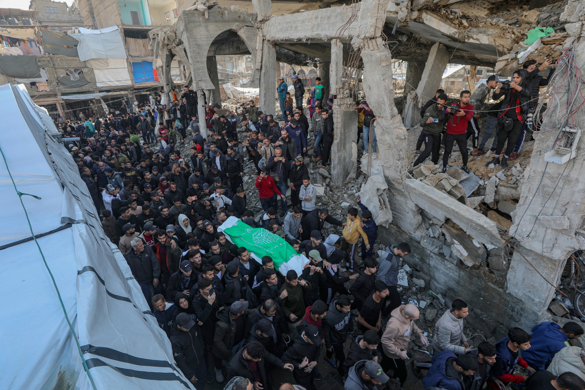 Οι πενθούντες φώναζαν «οι μάρτυρες είναι αγαπητοί στον Θεό» και μετέφεραν τις σορούς σε φέρετρα τυλιγμένα με πράσινες σημαίες της Χαμάς, σε μια από τις μεγαλύτερες επιδείξεις παρουσίας της οργάνωσης από τότε που τέθηκε σε ισχύ η συμφωνία κατάπαυσης του πυρός που υποστηρίχθηκε από τις ΗΠΑ στη Γάζα τον Οκτώβριο.