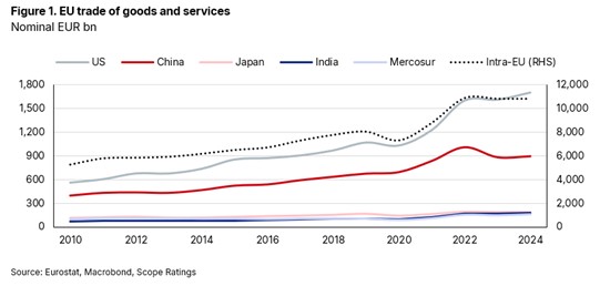 Σε μεγάλο βαθμό, οι επιπτώσεις θα εξαρτηθούν από το κατά πόσον θα υπάρξει εκτροπή εμπορίου από την Κίνα και τις Ηνωμένες Πολιτείες προς την Ινδία και τη Mercosur, σύμφωνα με τη Scope.