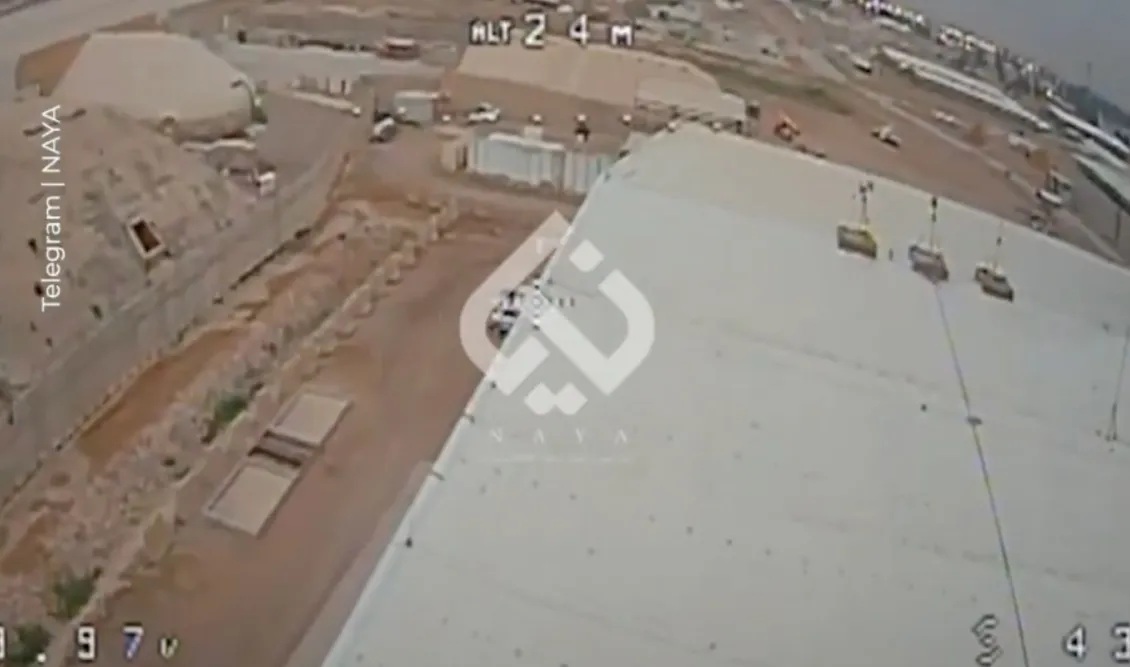 Στο βίντεο φαίνεται το drone να εισβάλει στην στρατιωτική βάση και να καταγράφει πλάνα από τις εγκαταστάσεις, πριν πέσει πάνω σε ένα κτίριο και ανατιναχθεί.