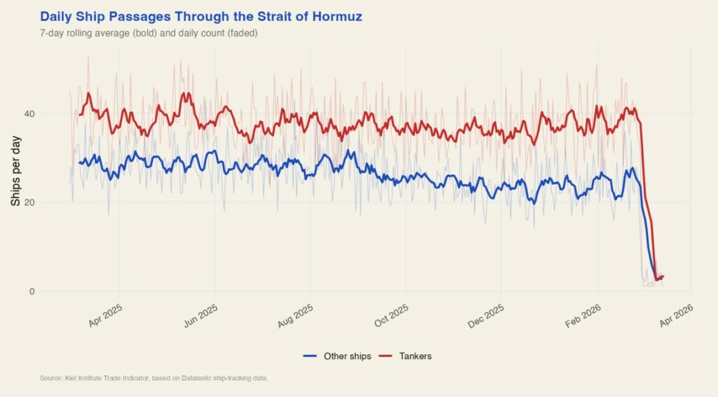 Μεταφορικό κόστος: Ο αριθμός των πλοίων που διασχίζουν τα Στενά κατέρρευσε από περισσότερα από 100 την ημέρα σε μόλις μερικές μονάδες. Αυτό έχει οδηγήσει σε τεράστιες καθυστερήσεις και αυξήσεις στα ναύλα, επηρεάζοντας ακόμη και τις αεροπορικές μεταφορές φαρμάκων μέσω κόμβων όπως το Ντουμπάι.