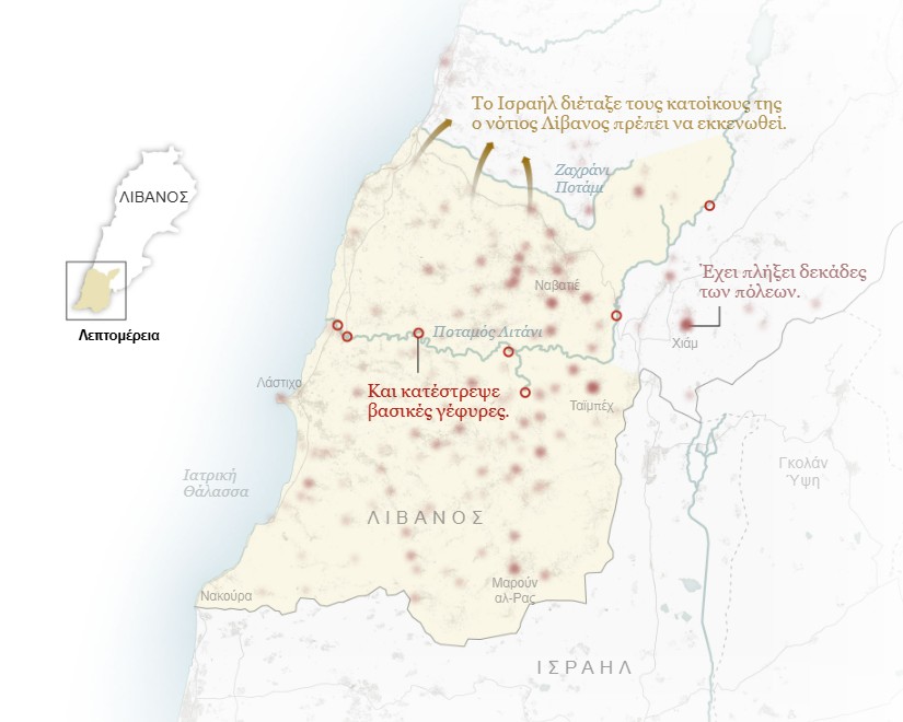 Σύμφωνα με ρεπορτάζ των The New York Times, η στρατιωτική δράση του Ισραήλ στον Νότιο Λίβανο αποτελεί ένα συγκροτημένο στρατηγικό σχέδιο για την απόκτηση πλήρους ελέγχου μιας εκτεταμένης ζώνης που φτάνει μέχρι τον ποταμό Λιτάνι.