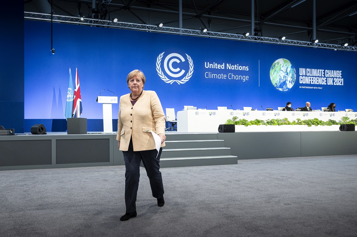 Η Άνγκελα Μέρκελ μετά το πέρας της ομιλίας της στη COP26, EPA/Guido Bergmann HANDOUT HANDOUT EDITORIAL USE ONLY/NO SALES
