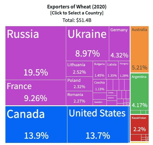 Το κενό στην παγκόσμια προμήθεια έχει γίνει δυσαναπλήρωτο καθώς η Ρωσία, πρώτος εξαγωγέας σιτηρών στον πλανήτη που κάλυπτε το 19,5%, το 2020, έχει περιορίσει τις εξαγωγές επιβάλλοντας ειδικό φόρο, προκειμένου να κρατήσει χαμηλά τις τιμές των τροφίμων στην εγχώρια αγορά. Να σημειωθεί πως η Ουκρανία βρισκόταν προπολεμικά στην πέμπτη θέση των εξαγωγέων σιτηρών, καλύπτοντας σχεδόν το 9% της αγοράς.