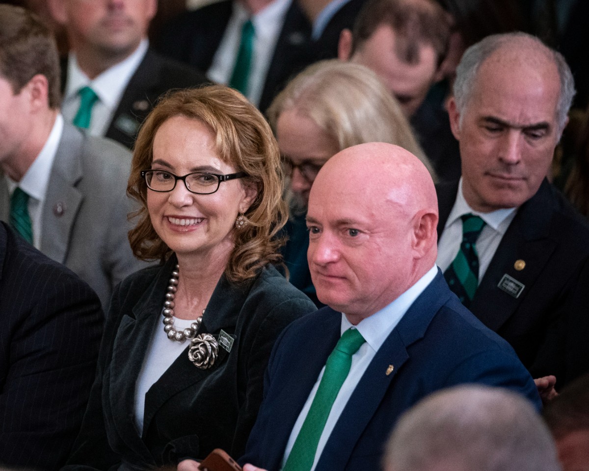 O πρώην αστροναύτης, υποψήφιος των Δημοκρατικών για την Αριζόνα Μαρκ Κέλι, με τη σύζυγό του πρώην βουλευτή Γκάμπι Γκίφορντς EPA/Al Drago / POOL