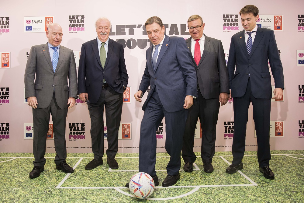 Με τον θρυλικό προπονητή Βιθέντε ντελ Μπόσκε, κάτοχο πολλών τίτλων (Μουντιάλ 2010, Euro 2012 και Champions League) με την εθνική Ισπανίας και τη Ρεάλ Μαδρίτης αντίστοιχα, καθώς και μία… 11άδα κτηνοτρόφων, χοιροτρόφων και εργαζομένων στον χοιροτροφικό τομέα, οι Ισπανοί επιχειρούν να αδράξουν το Μουντιάλ του Κατάρ για να προβάλουν το χοιρινό κρέας, καθώς και τους 400.000 επαγγελματίες σε όλα τα στάδια της παραγωγής, μεταποίησης και εμπορίας του.