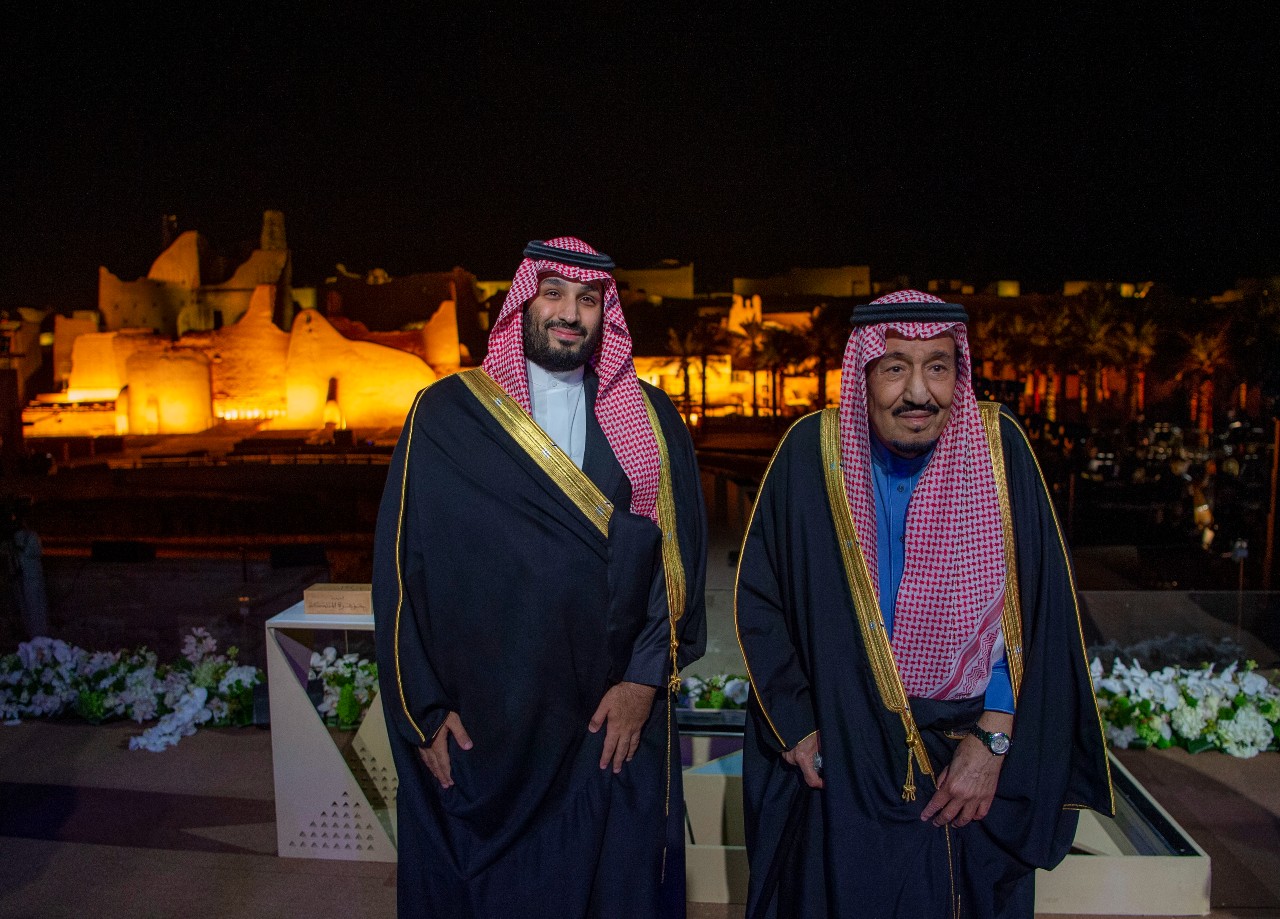 Ο βασιλιάς Σαλμάν μπιν Αμπντελαζίζ αλ Σαούντ και ο πρίγκιπας διάδοχος, Μοχάμεντ μπιν Σαλμάν, εγκαινιάζουν το έργο Diriyah Gate EPA/BANDAR ALJALOUD HANDOUT HANDOUT EDITORIAL USE ONLY/NO SALES