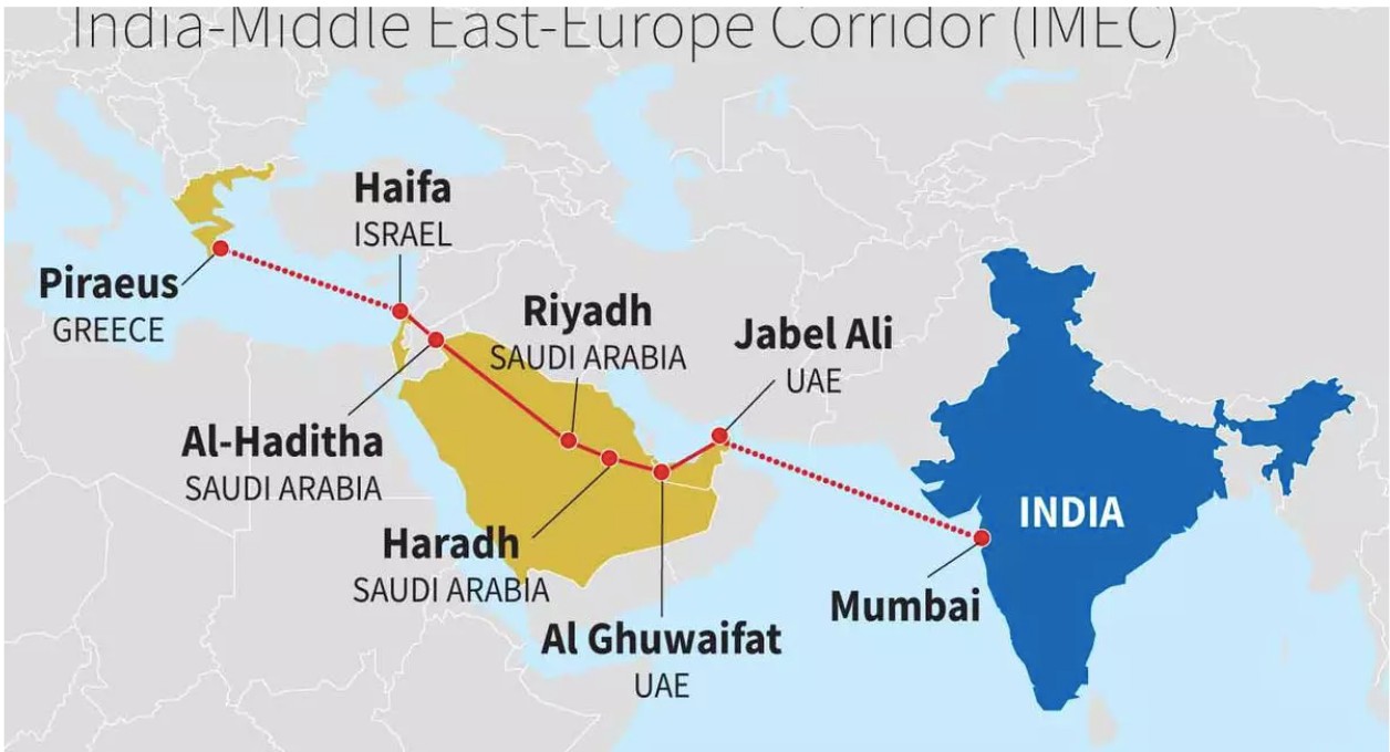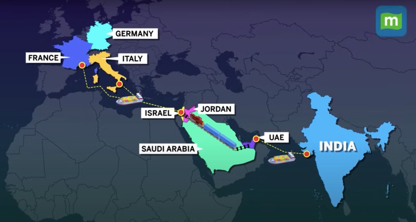 Στη διάρκεια της συνόδου της ομάδας G20, υπογράφηκε ένα μνημόνιο συνεννόησης για τον IMEC (προέρχεται από τα αρχικά στα αγγλικά των λέξεων: Ινδία, Μέση Ανατολή και Ευρωπαϊκός -Οικονομικός- Διάδρομος) μεταξύ των μερών που στηρίζουν τη συμφωνία, δηλαδή ΗΠΑ, Ινδία, Σ. Αραβία, Ηνωμένα Αραβικά Εμιράτα (ΗΑΕ), Γαλλία, Γερμανία, Ιταλία και Ευρωπαϊκή Ένωση.