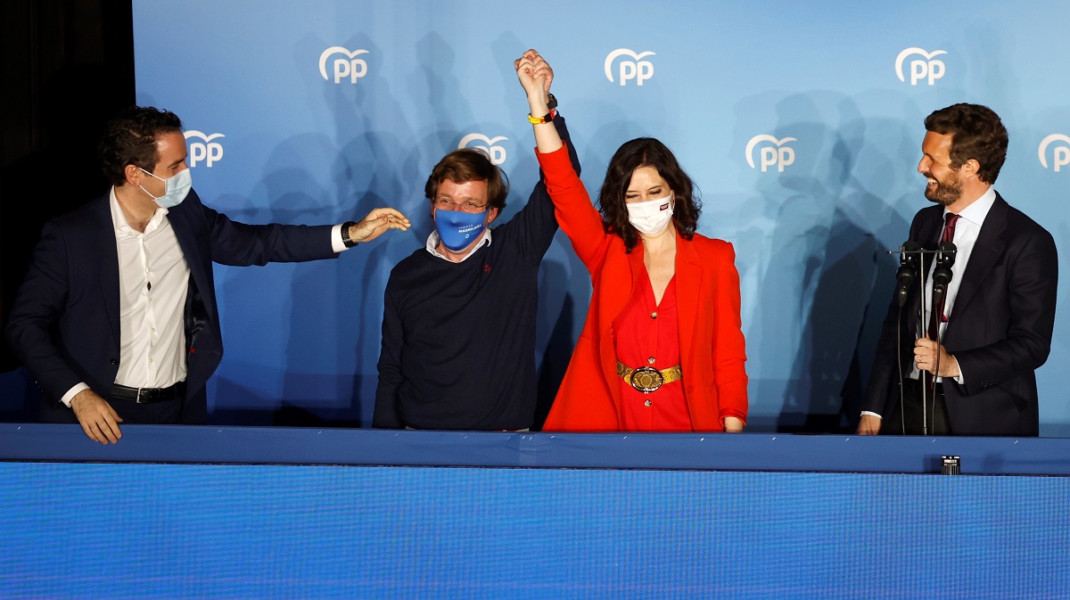 «Η Ελευθερία νίκησε», είπε περιχαρής ο ηγέτης του PP, Πάμπλο Κασάντο, στους υποστηρικτές. Οι ψηφοφόροι «εμπιστεύτηκαν τη διαχείριση της πανδημίας από την Αγιούσο».