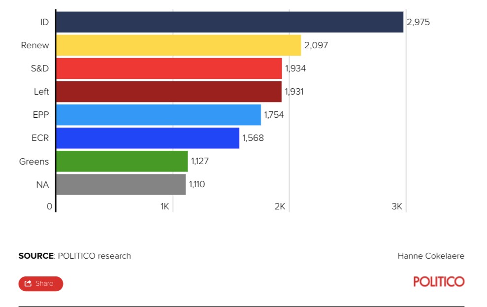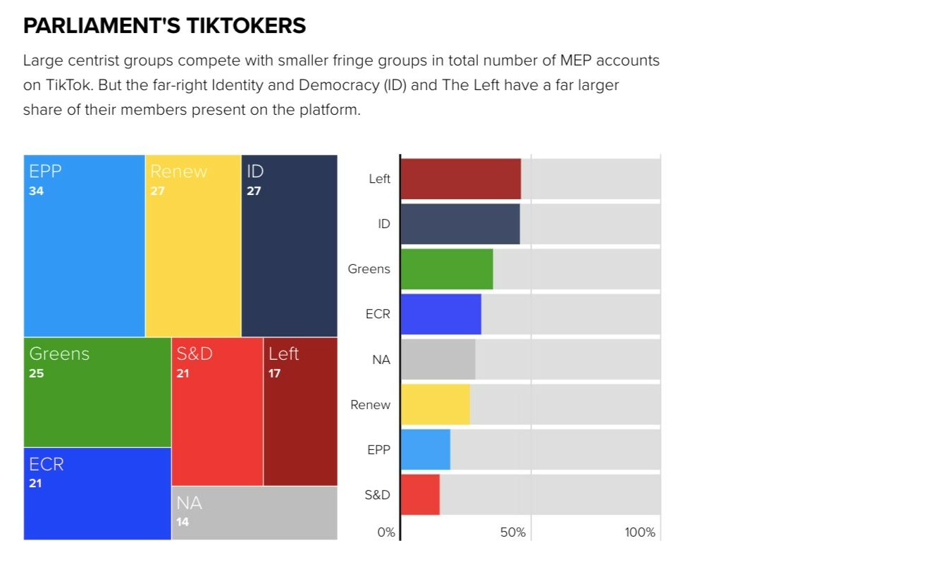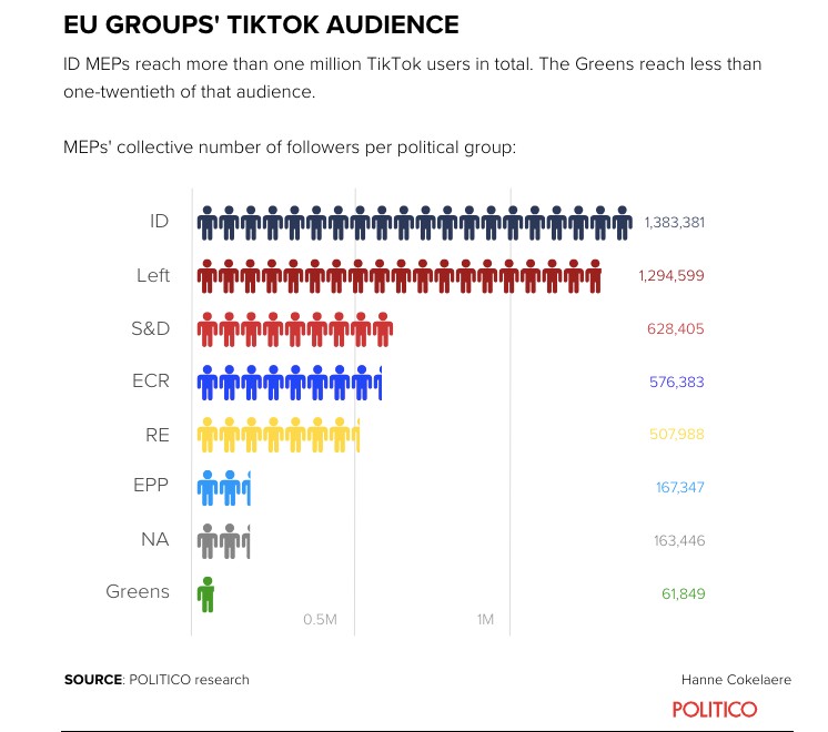 Έτσι παρότι όλα τα μεγάλα ευρωκόμματα έχουν παρουσία στο μέσο δικτύωσης, η Αριστερά και το ακροδεξιό ID επικοινωνούν μέσω αυτών με μεγαλύτερο ποσοστό των ψηφοφόρων τους.