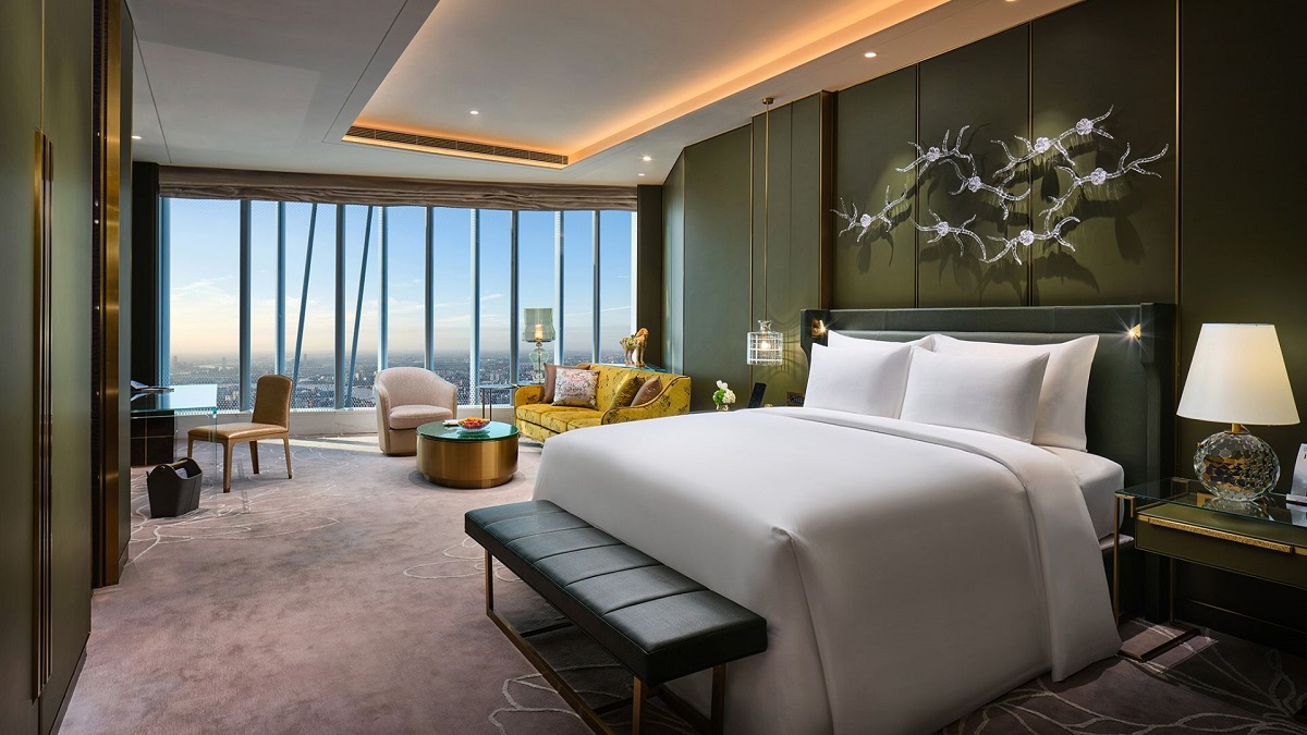 Το πολυτελές ξενοδοχείο καταλαμβάνει λοιπόν τους τελευταίους ορόφους αυτού του ουρανοξύστη, που έχει 128 ορόφους και που είναι ο δεύτερος υψηλότερος του πλανήτη μετά τον ουρανοξύστη Μπουρτζ Χαλίφα (828 μέτρα) στο Ντουμπάι.