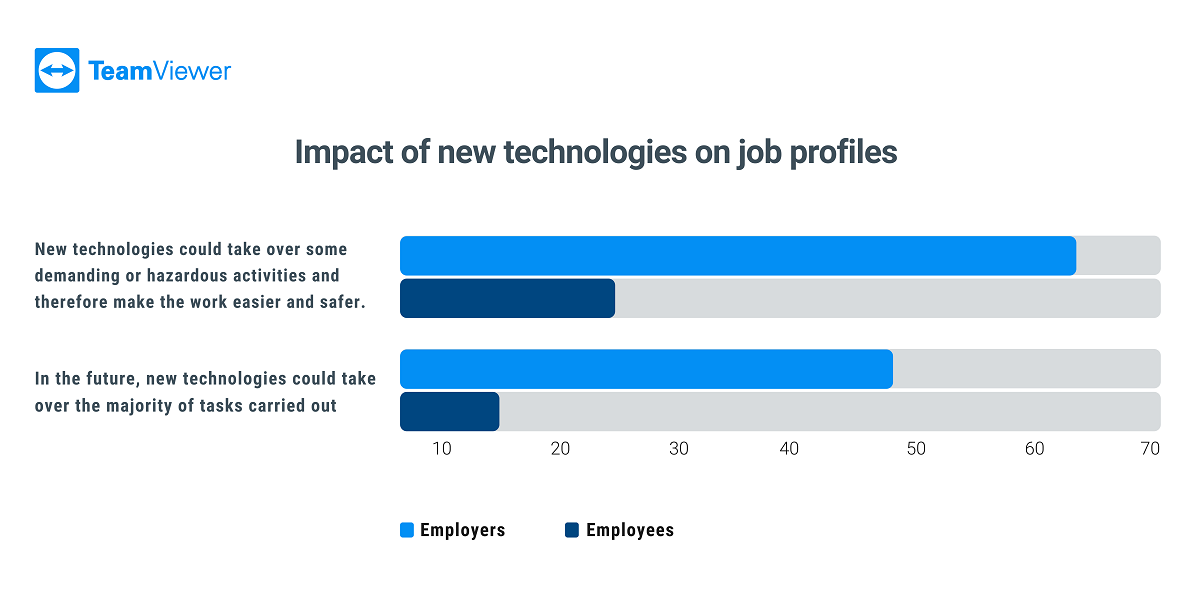 Ωστόσο, μια έρευνα που διενήργησε η YouGov εκ μέρους του Handelsblatt Research Institute και της TeamViewer αποκαλύπτει ότι η σημασία των ψηφιακών τεχνολογιών δεν γίνεται αντιληπτή εξίσου στο εργατικό δυναμικό, κυρίως λόγω των αντίστοιχων εργασιακών τους συνθηκών που βασίζονται στο εάν έχουν γραφείο ή όχι.
