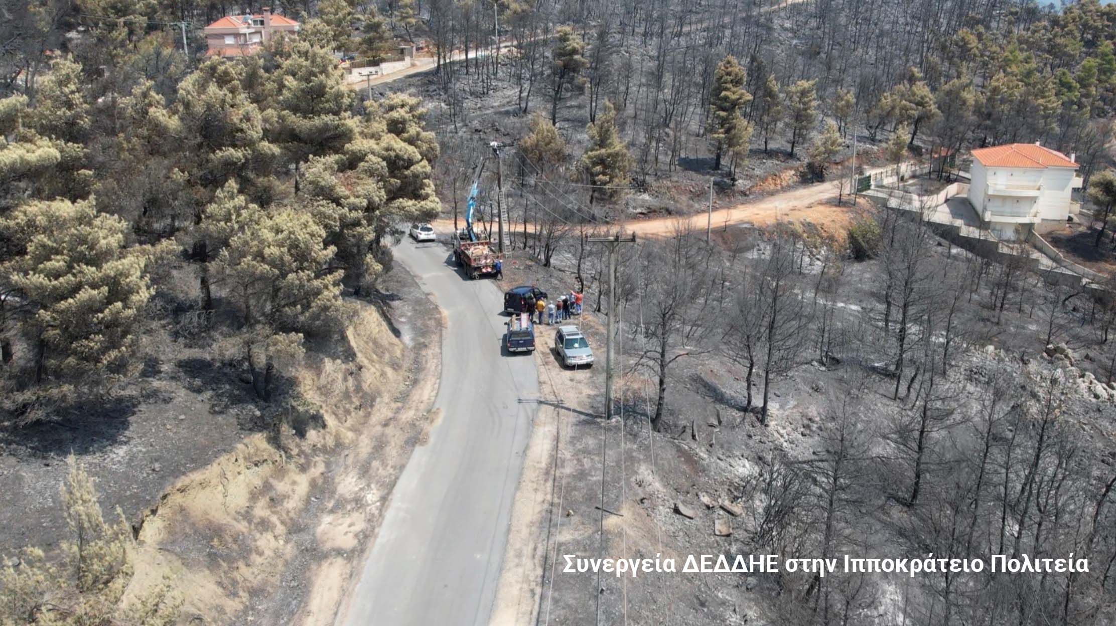 Ο ΔΕΔΔΗΕ σε συνέχεια της ενημέρωσης του κοινού ανακοινώνει ότι όλες του οι δυνάμεις συνεχίζουν πυρετωδώς τις εργασίες για την αποκατάσταση των τεράστιων ζημιών που προκλήθηκαν στο Δίκτυο Ηλεκτρικής Ενέργειας πανελλαδικά από τις καταστροφικές πυρκαγιές.