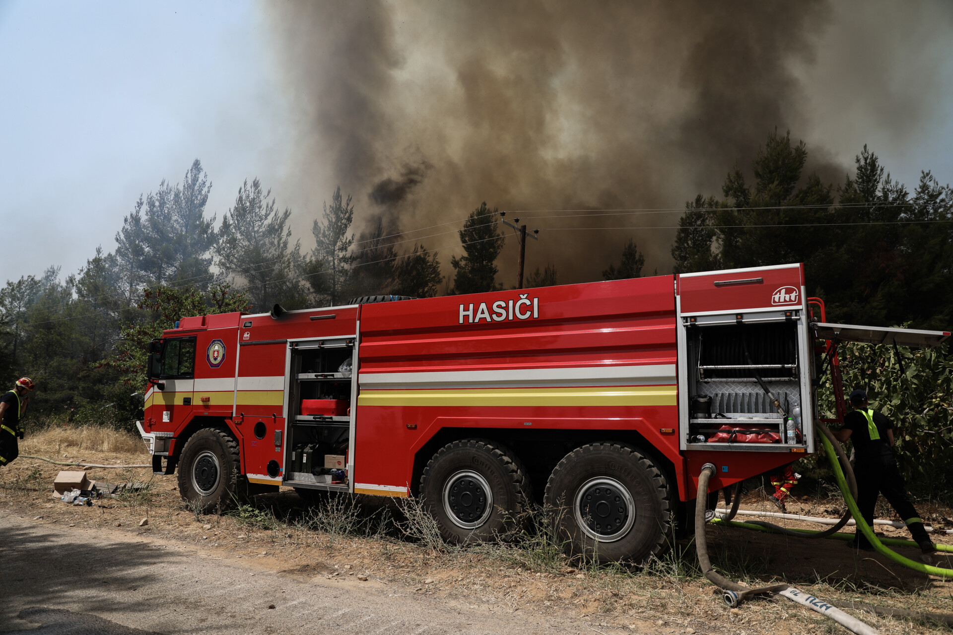 Επίσης για την αεροπυρόσβεση έχουν διατεθεί 14 Ε/Π συμπεριλαμβανομένων τριών Ε/Π από Σερβία, δύο Ε/Π από Ελβετία, ενός της Ελληνικής Αεροπορίας Στρατού, δύο Ε/Π της Αιγυπτιακής Αεροπορίας Στρατού και ενός Ε/Π ως συντονιστικό. Συνδρομή παρέχουν το Λιμενικό Σώμα, οι Ένοπλες Δυνάμεις με πεζοπόρα τμήματα, εθελοντές πυροσβέστες και η τοπική αυτοδιοίκηση με υδροφόρες και μηχανήματα έργου.