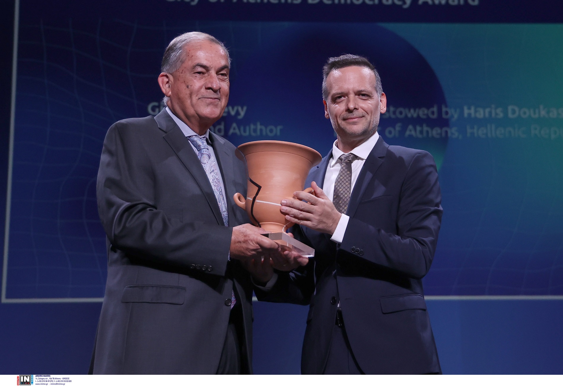 Το βραβείο Δημοκρατίας του Δήμου της Αθήνας απονεμήθηκε φέτος στον Ισραηλινό δημοσιογράφο Gideon Levy, από τον Δήμαρχο Αθηναίων Χάρη Δούκα.