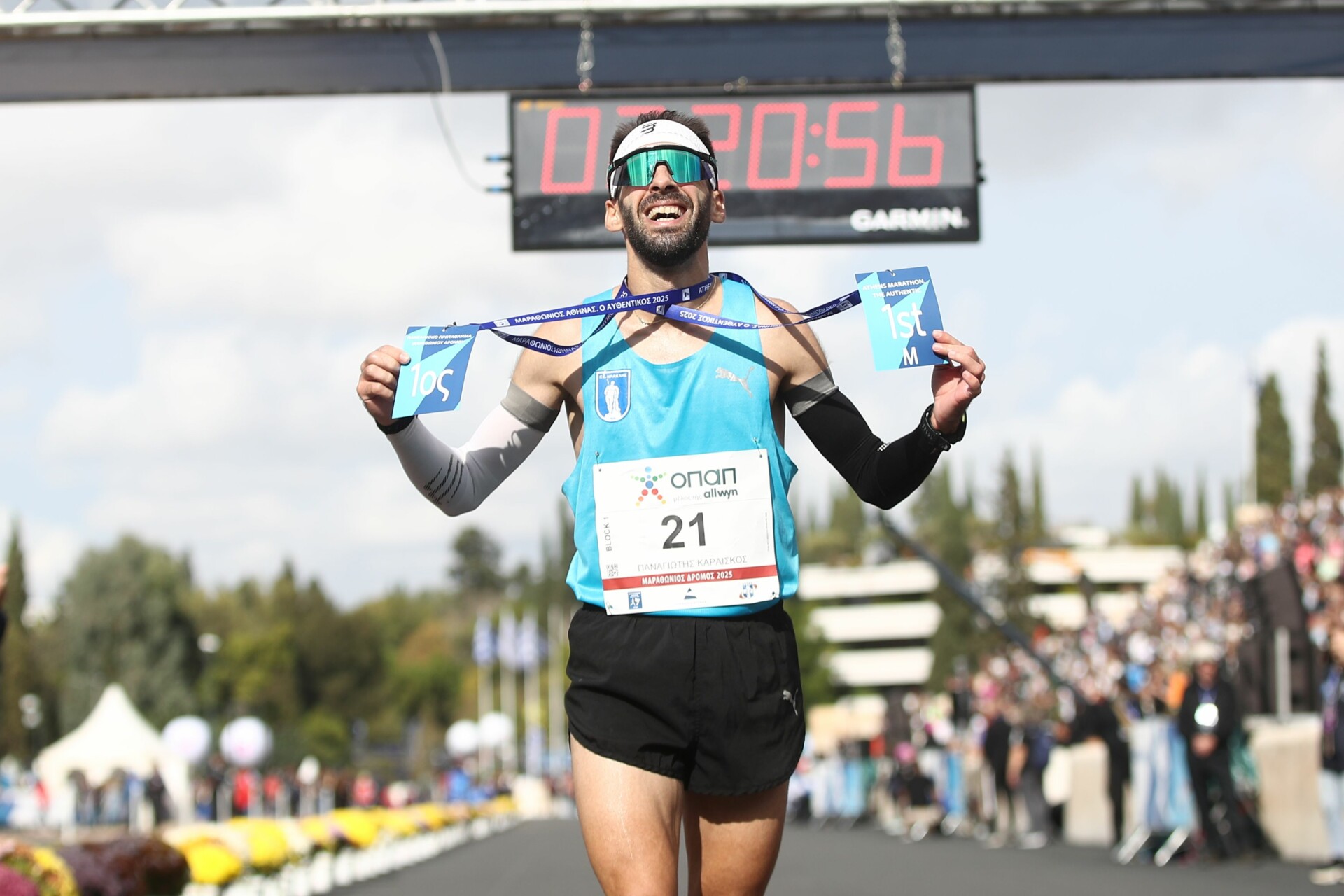 Ο Παναγιώτης Καραΐσκος τερμάτισε πρώτος στο Καλλιμάρμαρο στον 42ο Αυθεντικό Μαραθώνιο Αθηνών καλύπτοντας την απόσταση των 42.195 μέτρων σε 2:20:08.