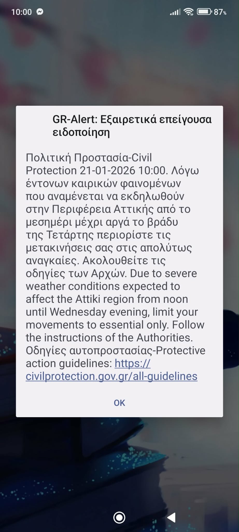 Ειδικότερα, γίνεται λόγος για «έντονα καιρικά φαινόμενα που αναμένονται να εκδηλωθούν στην Περιφέρεια Αττικής από το μεσημέρι μέχρι άργα το βράδυ της Τετάρτης, περιορίστε τις μετακινήσεις σας στις απολύτως αναγκαίες». Και προστίθεται: «Ακολουθείτε τις οδηγίες των Αρχών».