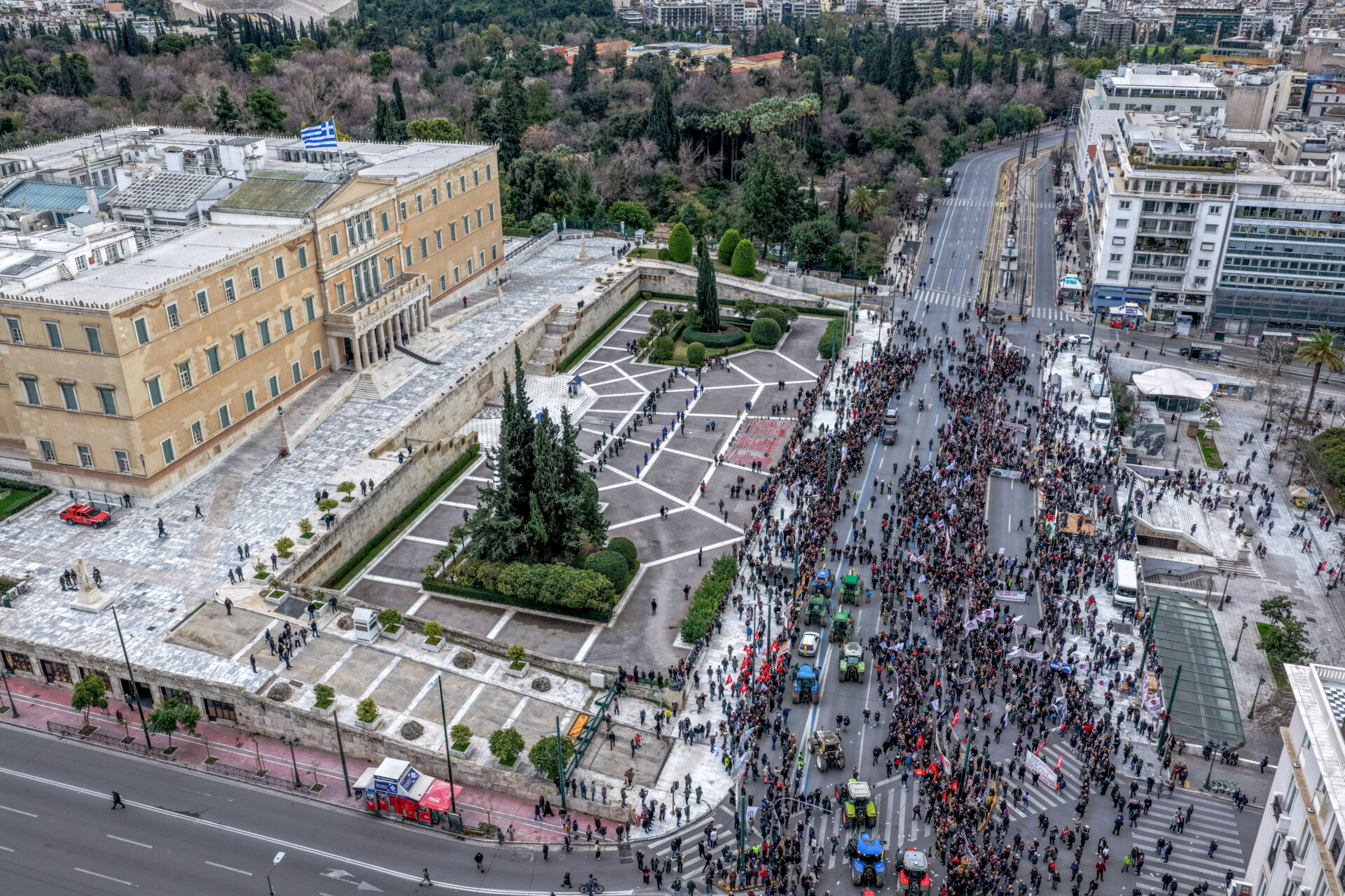 Ολοκληρώθηκαν λίγα λεπτά νωρίτερα από τις 19:30 οι ομιλίες αγροτοσυνδικαλιστών, αγροτών και κτηνοτρόφων στην πλατεία Συντάγματος, οι οποίοι συμμετείχαν στο συλλαλητήριο της Πανελλαδικής Επιτροπής των Μπλόκων.