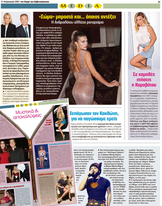 Μη χάσετε το Σάββατο 21 Φεβρουαρίου 2026 το αποκαλυπτικό «ΚΑΡΦΙ» που κυκλοφορεί σε όλα τα περίπτερα της χώρας με πλούσια θεματολογία και πολλές αποκλειστικότητες.