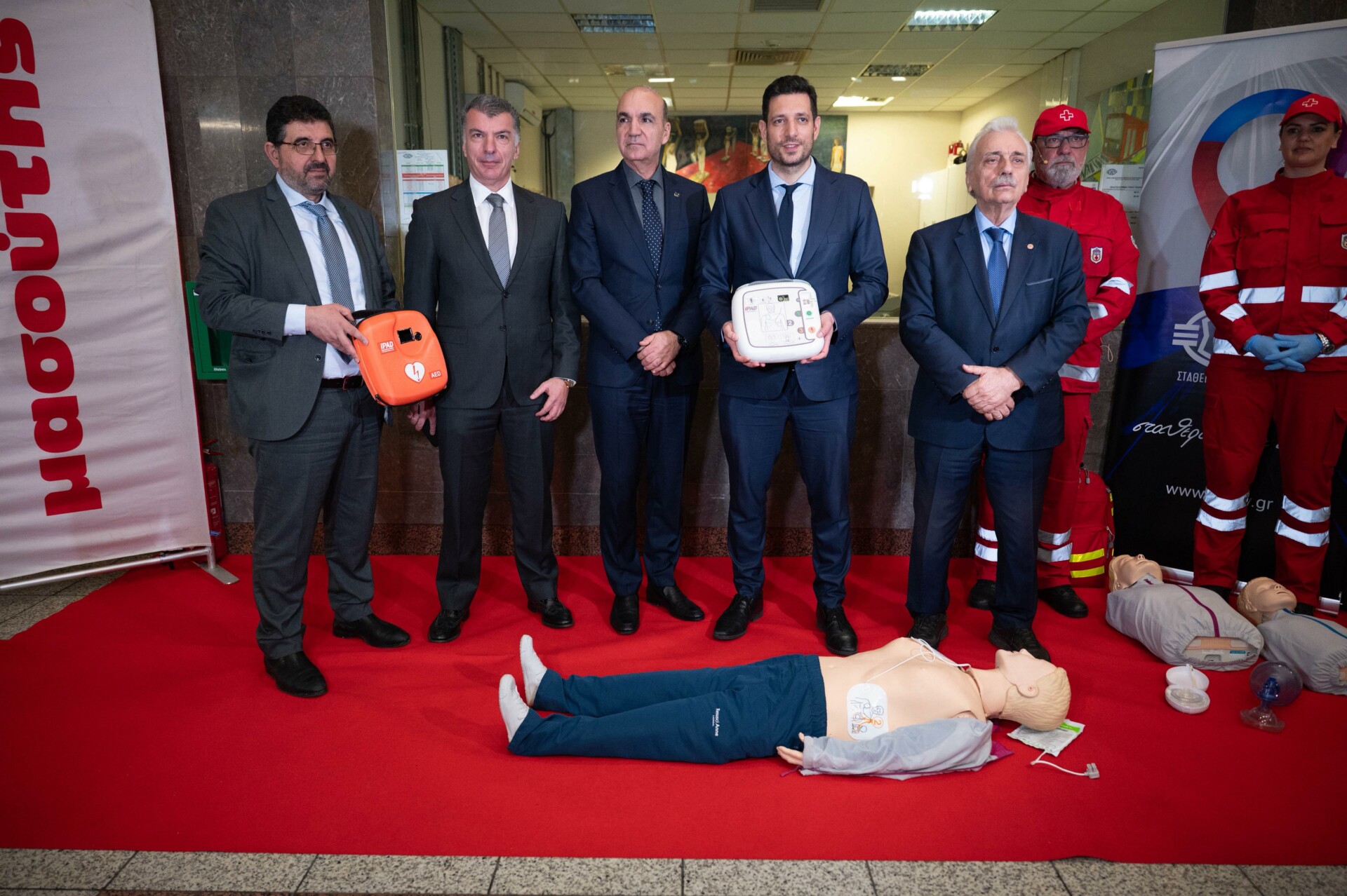 Ο πρόεδρος του Ελληνικού Ερυθρού Σταυρού (ΕΕΣ) Dr. Αντώνιος Αυγερινός δήλωσε: «Τα πρώτα λεπτά μετά από ένα ατύχημα ή μια αιφνίδια αδιαθεσία, είναι καθοριστικά για την επιβίωση του θύματος, καθώς και για να αποτραπεί μία μόνιμη ή πρόσκαιρη αναπηρία. Η καρδιοαναπνευστική αναζωογόνηση είναι το πρώτο το οποίο πρέπει όλοι να μάθουμε για να μπορέσουμε να προσφέρουμε σε μια έκτακτη κατάσταση αλλά και ο Αυτόματος Εξωτερικός Απινιδωτής (ΑED) που σήμερα παρουσίασαν τη χρήση του οι εθελοντές Σαμαρείτες – Διασώστες μας, είναι ένας σωτήριος βασικός κρίκος στην αλυσίδα επιβίωσης. Ευχαριστούμε τον αναπληρωτή υπουργό Μεταφορών Κωνσταντίνο Κυρανάκη για την εμπιστοσύνη και την εκτίμησή του στο έργο και τις δράσεις του ΕΕΣ. Επίσης, ευχαριστούμε θερμά τον Διαμαντή Μασούτη για την ευγενική χορηγία, καθώς και τον διευθύνοντα σύμβουλο του ΟΑΣΑ και πρόεδρο ΔΣ ΣΤΑΣΥ Αντώνη Κεραστάρη και τον διευθύνοντα σύμβουλο της ΣΤΑΣΥ Αθανάσιο Κοτταρά για τη σημαντική αυτή πρωτοβουλία. Ο ΕΕΣ πρωτοστατεί, επί δεκαετίες ολόκληρες, στην εκμάθηση πρώτων βοηθειών με ωραία βιωματικά, διαδραστικά μαθήματα πρώτων βοηθειών. Καλούμε όλους τους συμπολίτες μας να έρθουν και να τα παρακολουθήσουν».