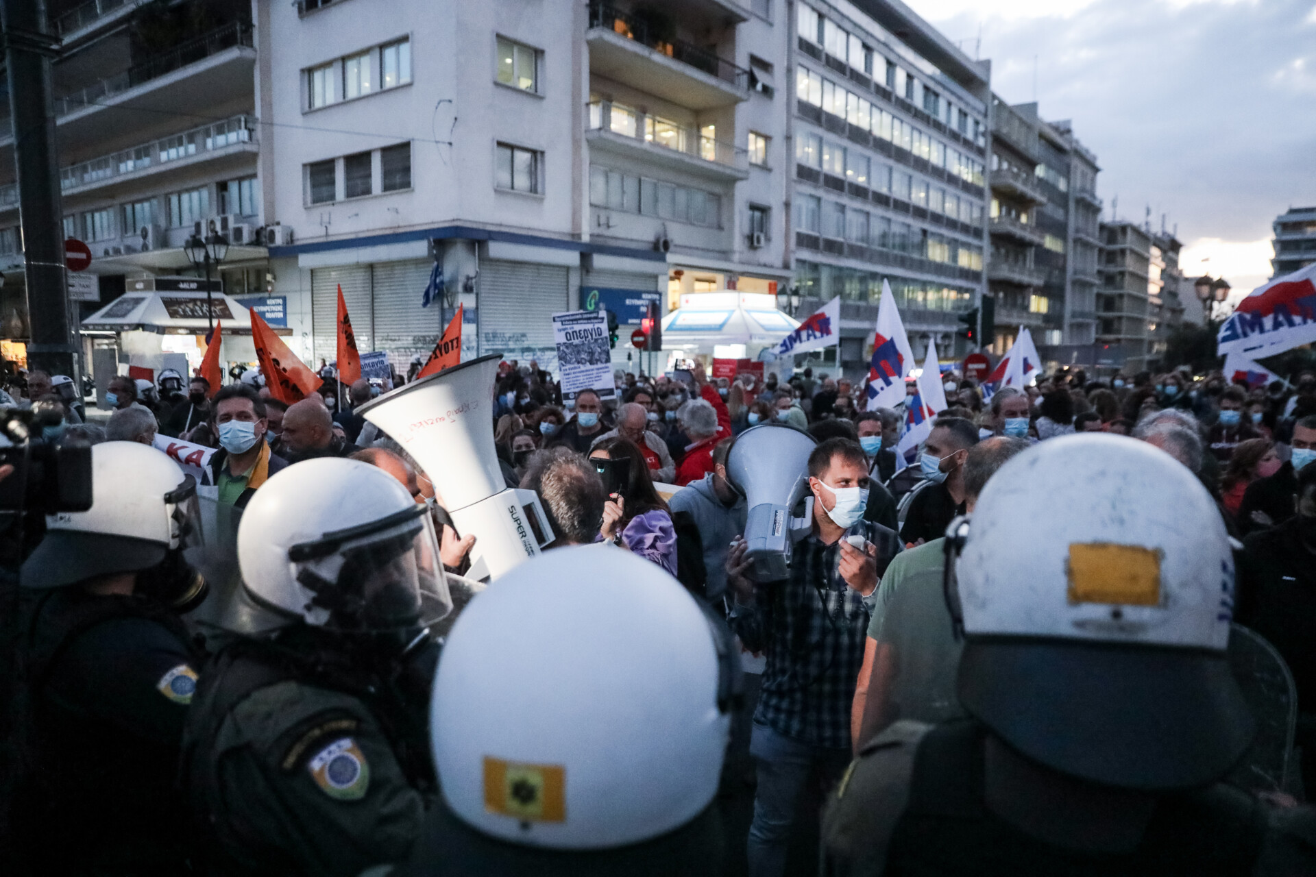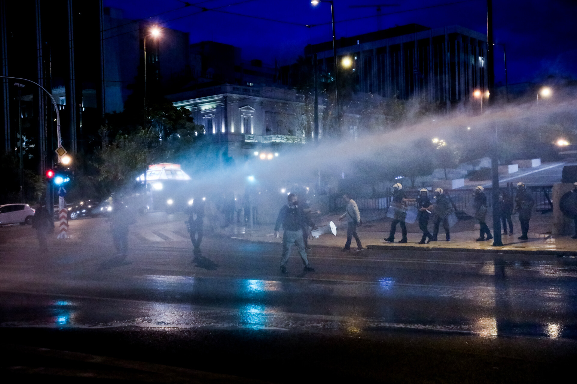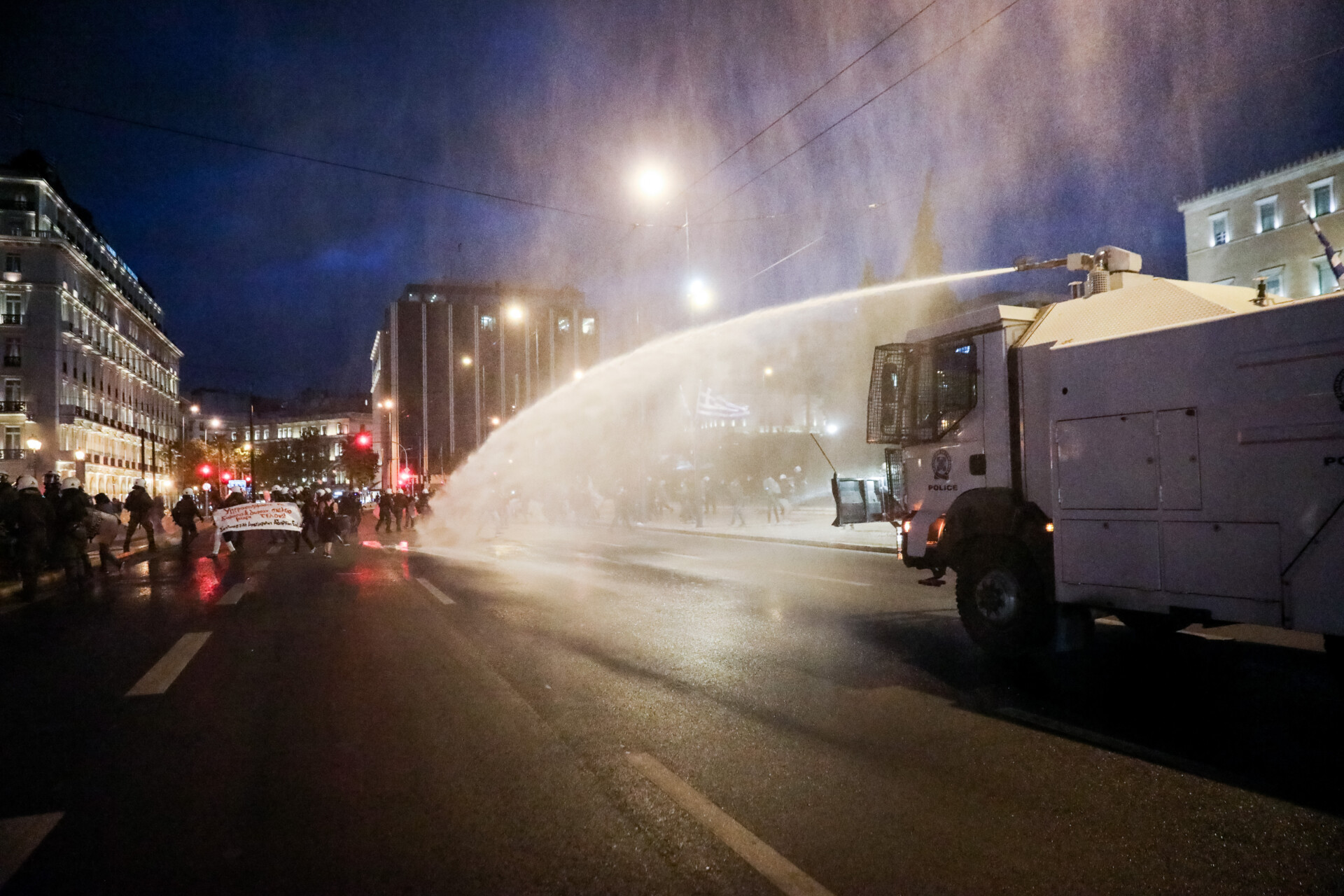 Σύμφωνα με την ΕΛΑΣ, περίπου 800 άτομα προσπάθησαν να κλείσουν την Αμαλίας και τότε αστυνομικές δυνάμεις τους εμπόδισαν, ενώ έγινε περιορισμένη χρήση χημικών και ρίψη νερού από το ειδικό όχημα της Αστυνομίας, τον «Αίαντα».