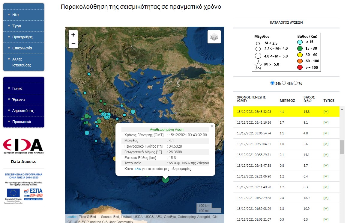Σεισμική δόνηση 4,1 βαθμών της κλίμακας Ρίχτερ, η οποία χαρακτηρίζεται «ασθενής», σημειώθηκε στις 05:43 νότια-νοτιοανατολικά της κοινότητας της Ζάκρου (νομός Λασιθίου), στην ανατολική Κρήτη, ενημέρωσε το Γεωδυναμικό Ινστιτούτο του Εθνικού Αστεροσκοπείου Αθηνών.