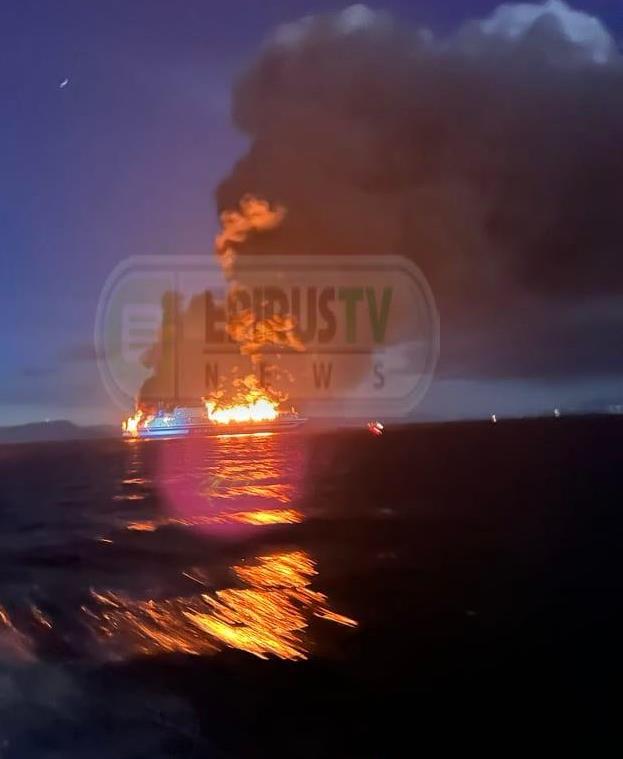 - Φωτιά βόρεια της Ερεικούσας, σε πλοίο με προορισμό την Ιταλία © epirus-tv-news.gr