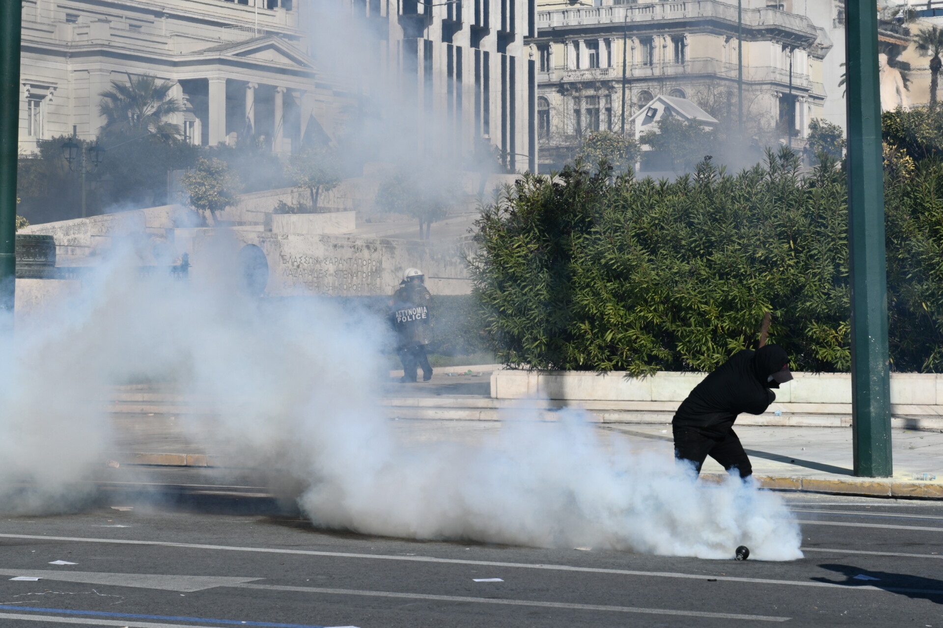 Στην συνέχεια τα επεισόδια μεταφέρθηκαν μπροστά από το μνημείο του Άγνωστου Στρατιώτη, όπου οι αστυνομικοί απώθησαν τους αγνώστους προς την Πανεπιστήμιου.
