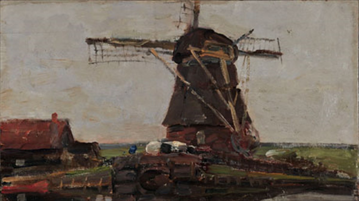 Ο δεύτερος πίνακας είναι του Mondrian, χρονολογείται από το 1905 και απεικονίζει έναν ανεμόμυλο. Αγοράστηκε από τον Αλέξανδρο Παππα και δόθηκε δωρεά το 1963 στην Εθνική Πινακοθήκη.