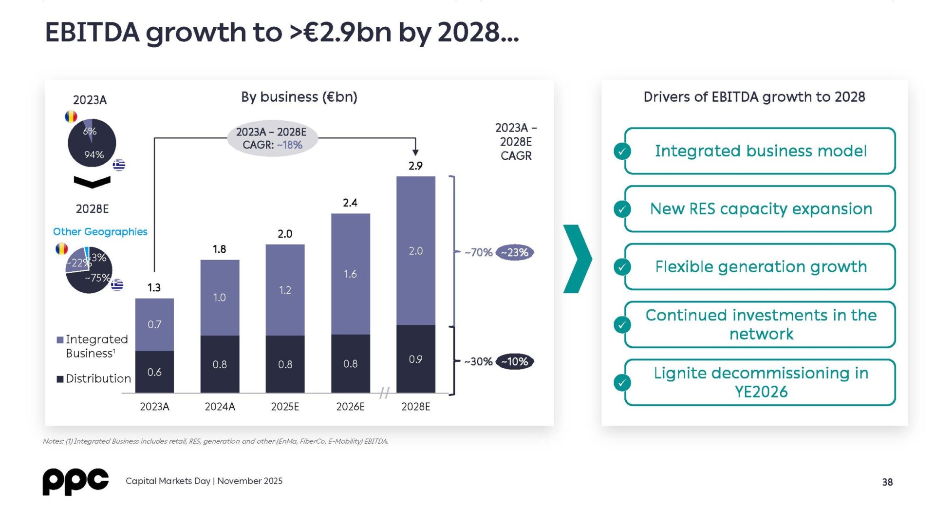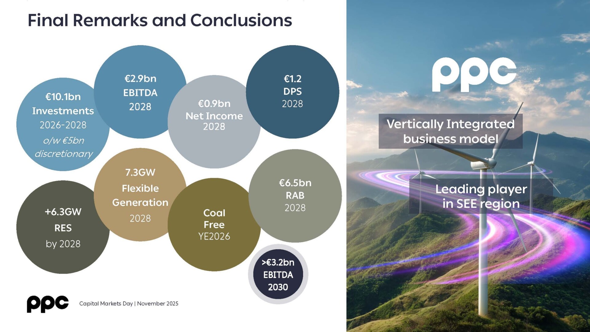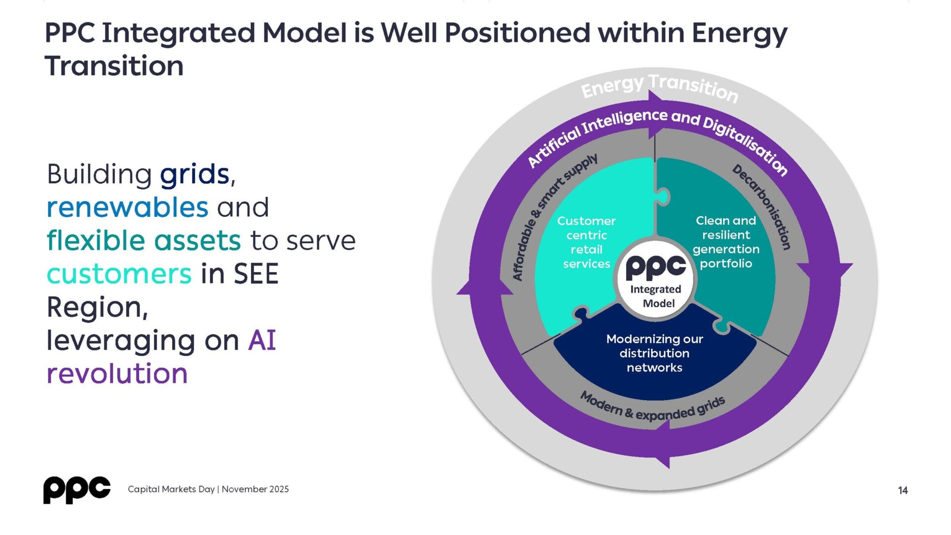 Όπως τόνισε ο κ. Στάσσης, αφετηρία του νέου σχεδίου είναι οι εύρωστες επιδόσεις του 2025, με την εταιρεία να κινείται εντός των στόχων της, κάτι που αποτυπώθηκε και στα αποτελέσματα του εννεαμήνου. «Η στρατηγική μας αποδίδει και παράγει αξία για τους μετόχους μας, γινόμαστε πιο πράσινοι και προβλέψιμοι, έχουμε επεκτείνει το επιτυχημένο καθετοποιημένο μοντέλο μας που μας επιτρέπει να είμαστε ανθεκτικοί και να παράγουμε κέρδη σε κάθε περιβάλλον τιμών σε όλη την περιοχή της ΝΑ Ευρώπης και ανοίγουμε νέους λεωφόρους εσόδων και κερδών, επεκτεινόμενοι στις τηλεπικοινωνίες, στην ηλεκτροκίνηση και στα data centers» υπογράμμισε μεταξύ άλλων.