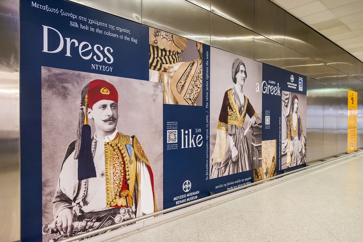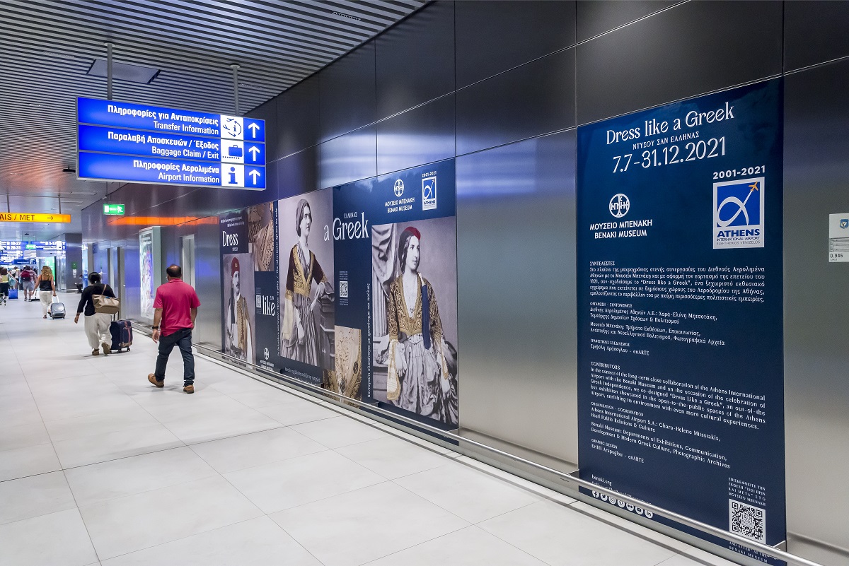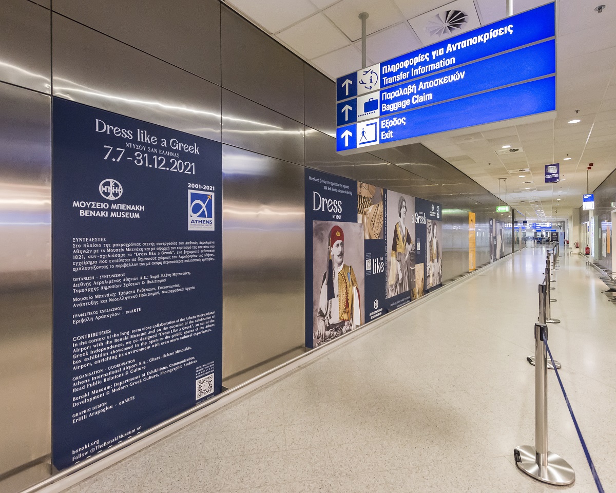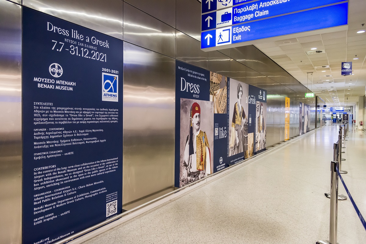 Πιο αναλυτικά, η έκθεση «Dress like a Greek – Ντύσου σαν Έλληνας» σχεδιάστηκε με αφορμή τον εορτασμό των 200 χρόνων από την Επανάσταση του 1821 και τη μεγάλη επετειακή έκθεση «1821 Πριν και Μετά» στο Μουσείο Μπενάκη / Πειραιώς 138. Πρόκειται για ένα πρωτοπόρο εγχείρημα εξάπλωσης της πολιτιστικής εμπειρίας στους χώρους του αεροδρομίου που εξελίσσει με μοναδικό τρόπο τη μακροχρόνια πολιτιστική συνεργασία του Διεθνούς Αερολιμένα Αθηνών με το Μουσείο Μπενάκη.